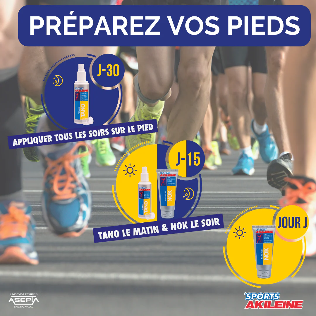 3 semaines avant la course : Appliquez 1 fois par jour sur toute la plante des pieds.