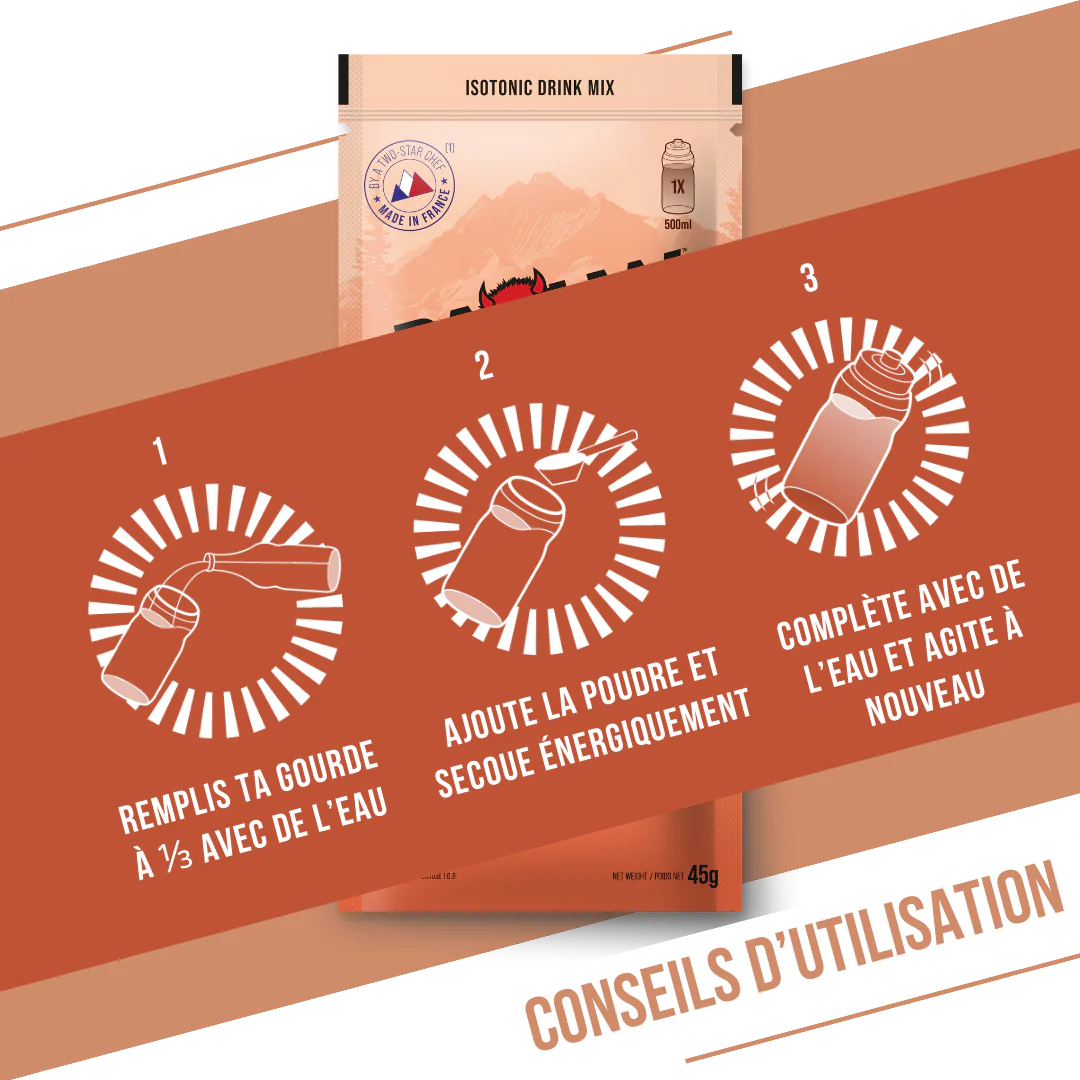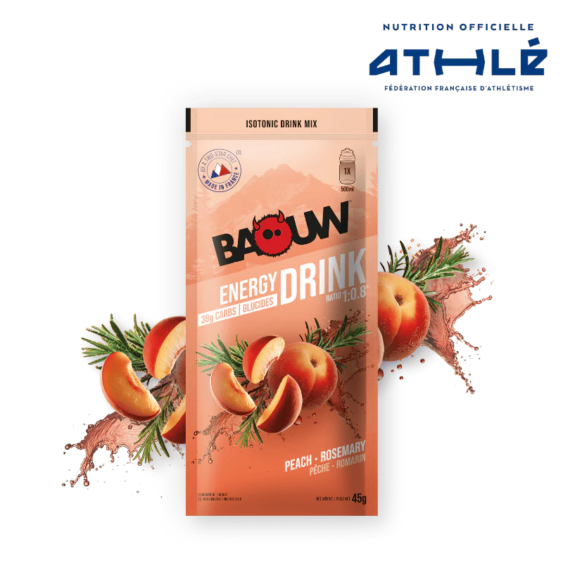 Sa saveur fruitée et légère pêche / romarin permet de s’hydrater efficacement sans saturation sucrée, idéale pour les sorties longues en trail, course à pied, cyclisme ou triathlon.