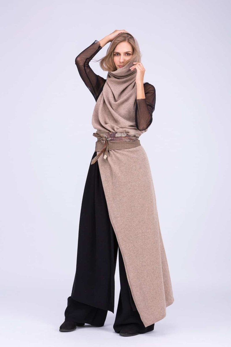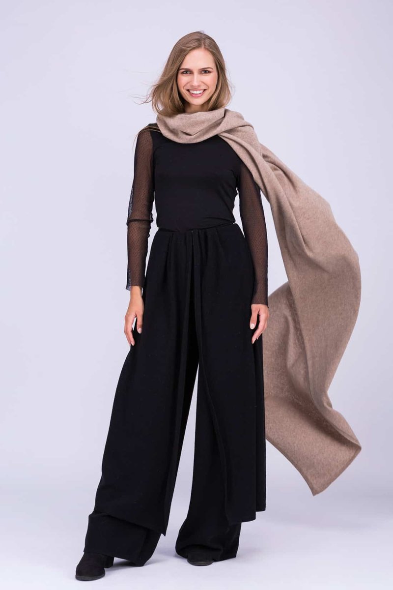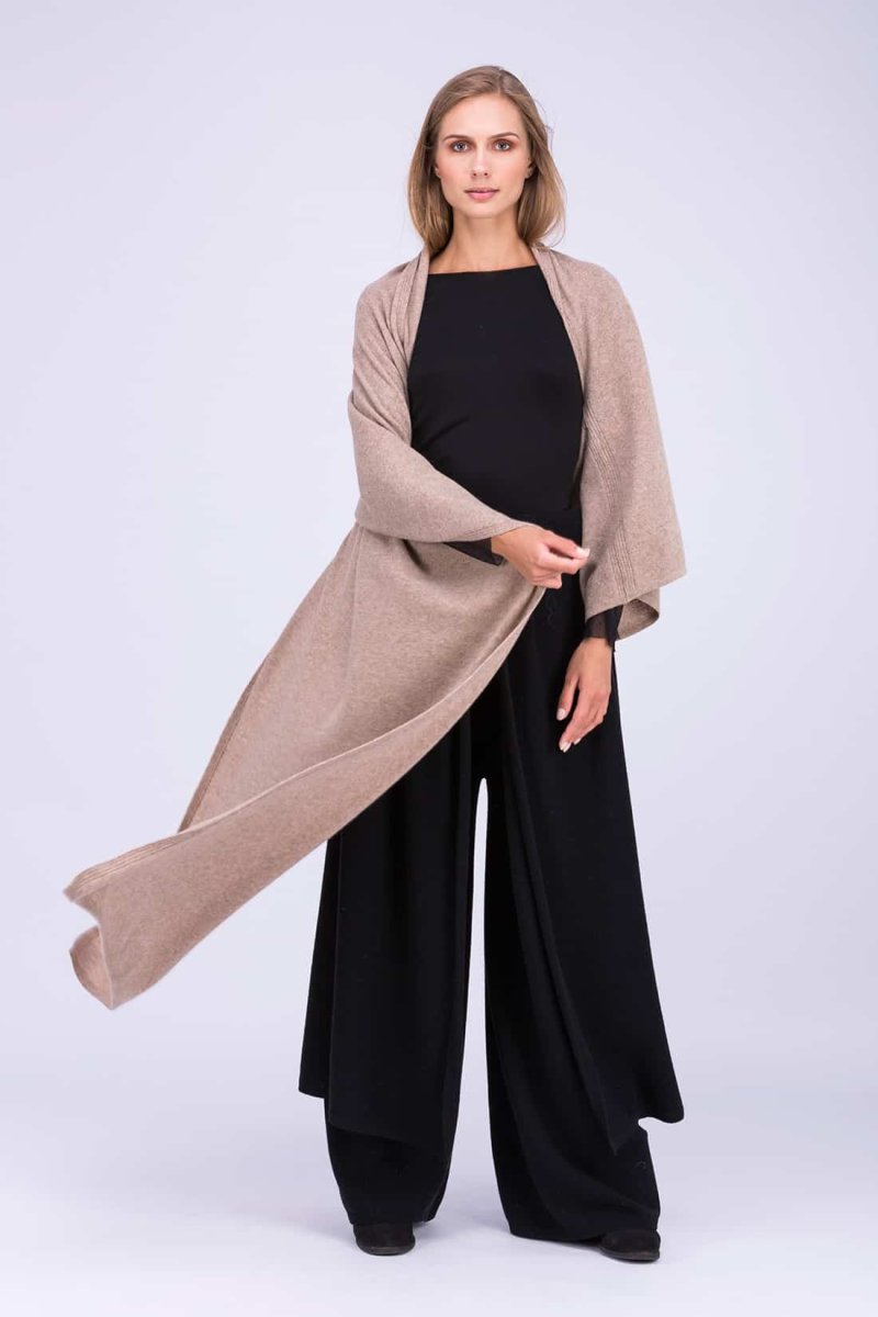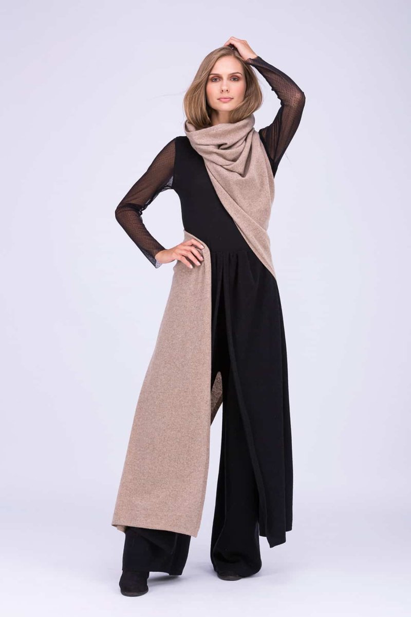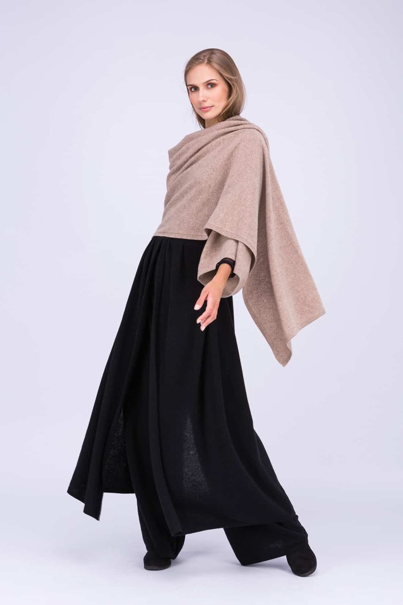 For the winter season, this sand-colored shawl has an original and unique cut: it has a sleeve! So you can wear it as an unstructured cardigan or simply as a shawl. Wrap it around yourself as you please, and get inspired by the photos on our Instagram page: : Boutique ASKA to unleash your fantasy.