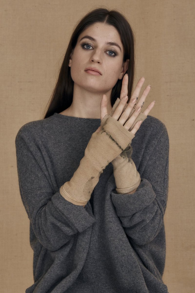 Beige printed wool mittens for women FLORA. Protect your beautiful hands from the cold! These wool mittens with their eco-print will look great with your outfit, whether it’s a jacket, jumper or coat. Soft and supple, easy to slip on and comfortable to wear! These mittens are an ideal match with our tobacco-colored ALASKA sweater […]