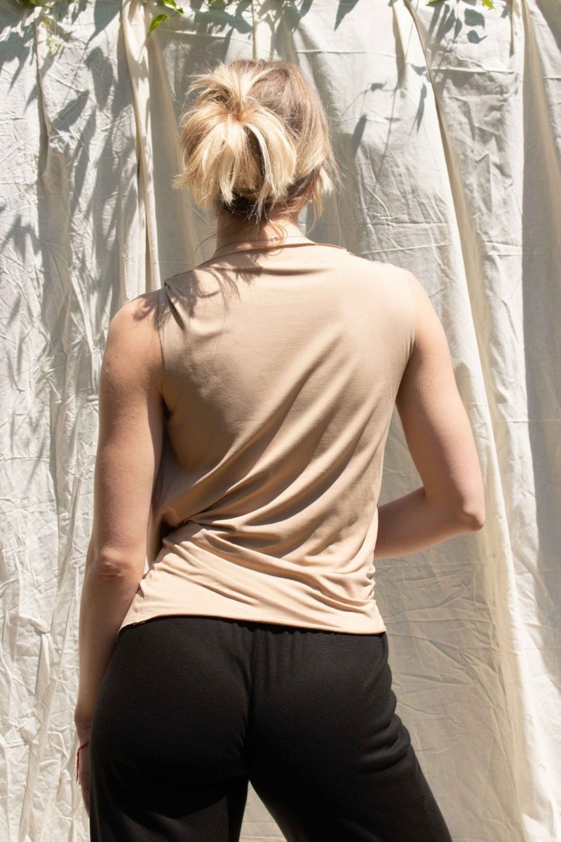 Beige Top with Cowl Neck in Viscose Jersey for Women PARISA