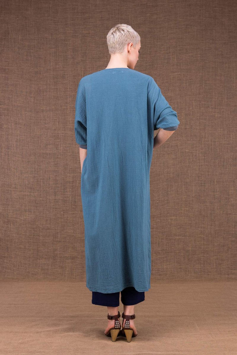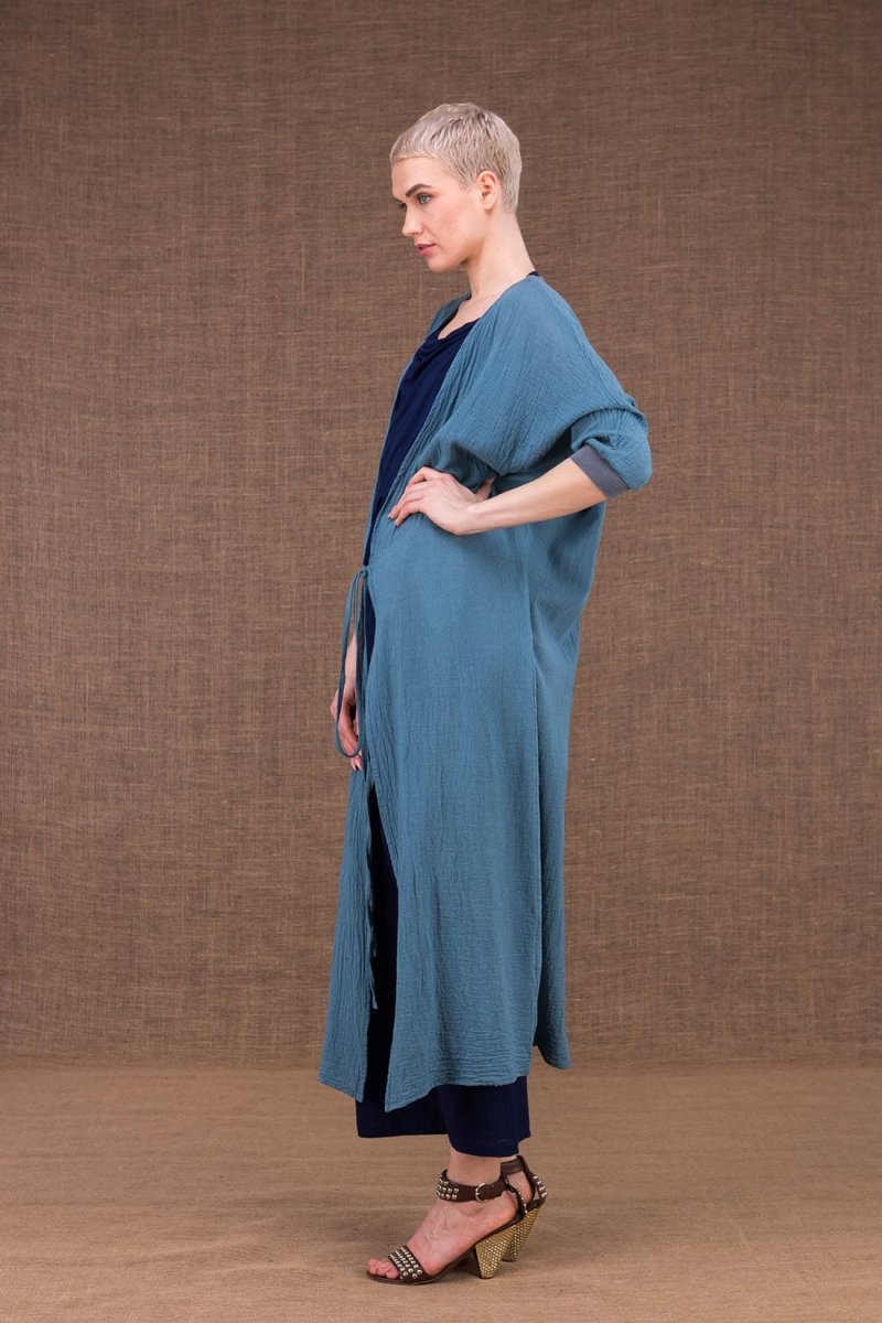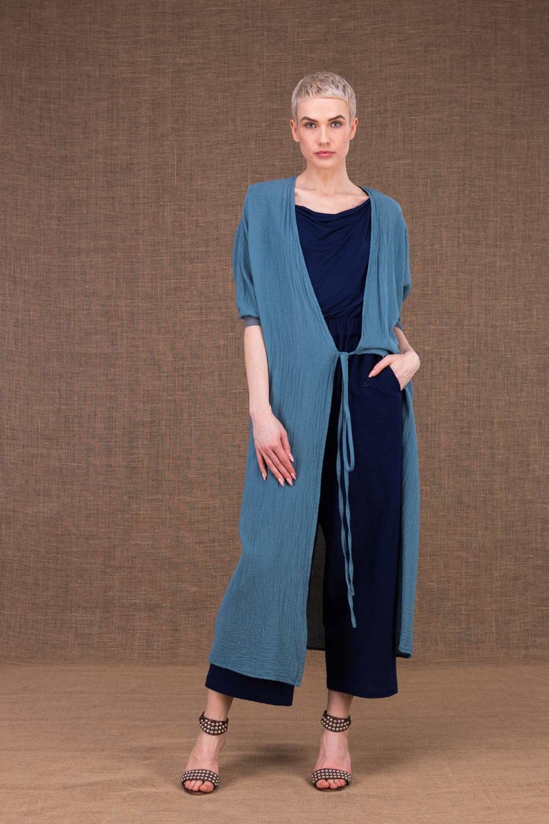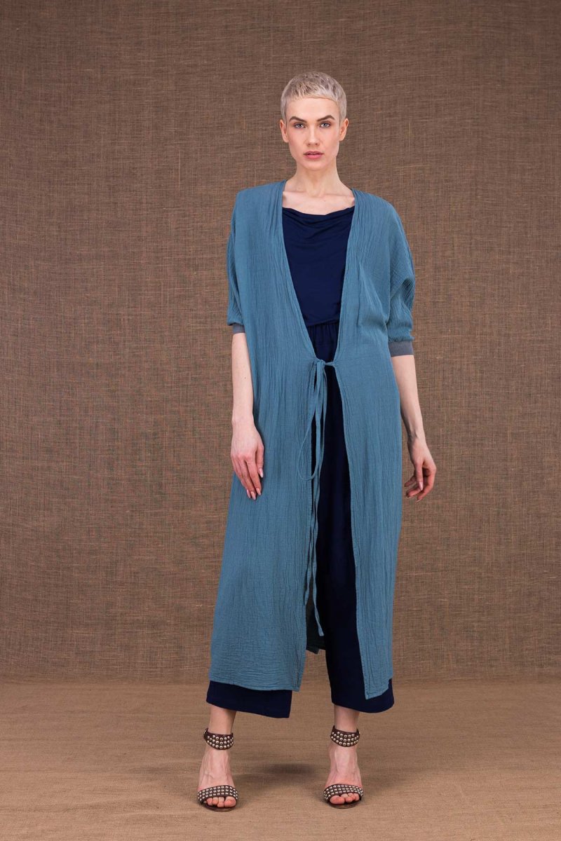 Blue long organic cotton gauze jacket for women GOBI. You’ll love it!