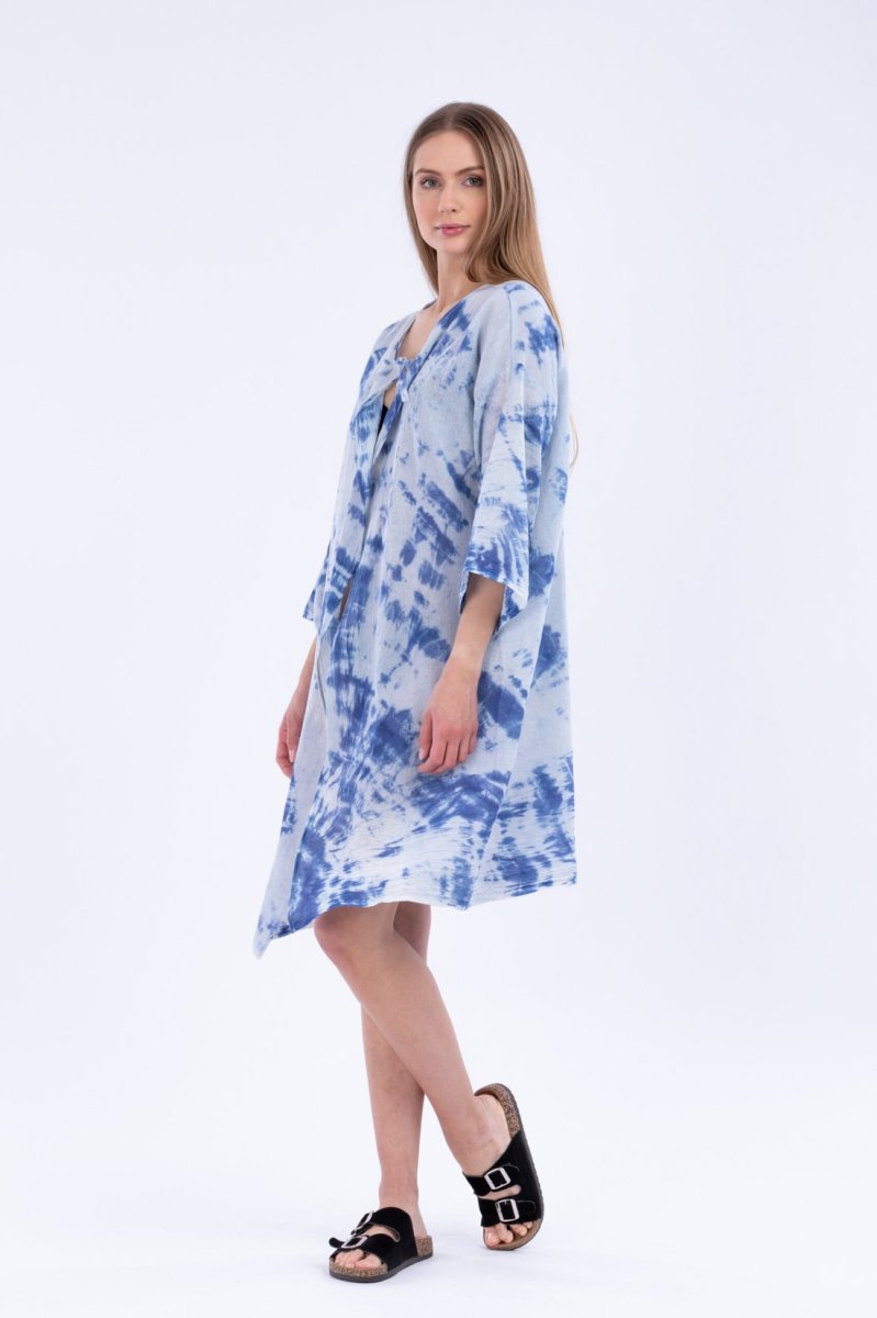 Blue midi printed organic cotton kimono jacket for women SEA. Softness and lightness…