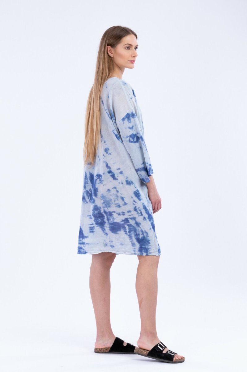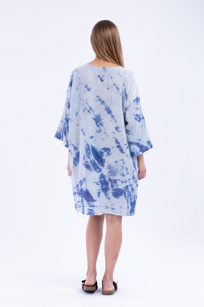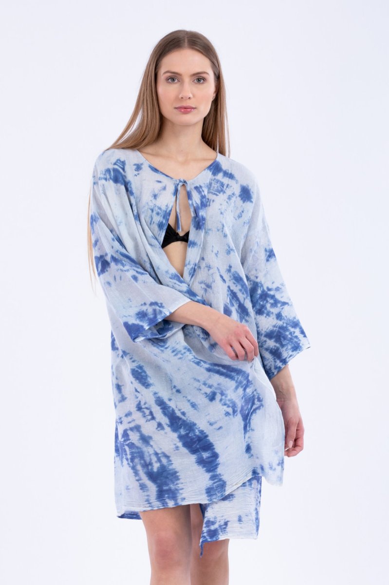 The fineness of this organic cotton and the delicacy of the tie-dye print, plus the simplicity of the shape, will guarantee you success for this summer. It can be worn alone on the beach or combined with a dress or pants.