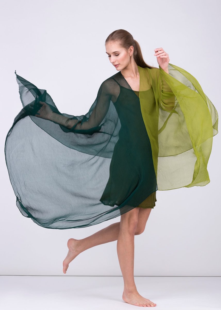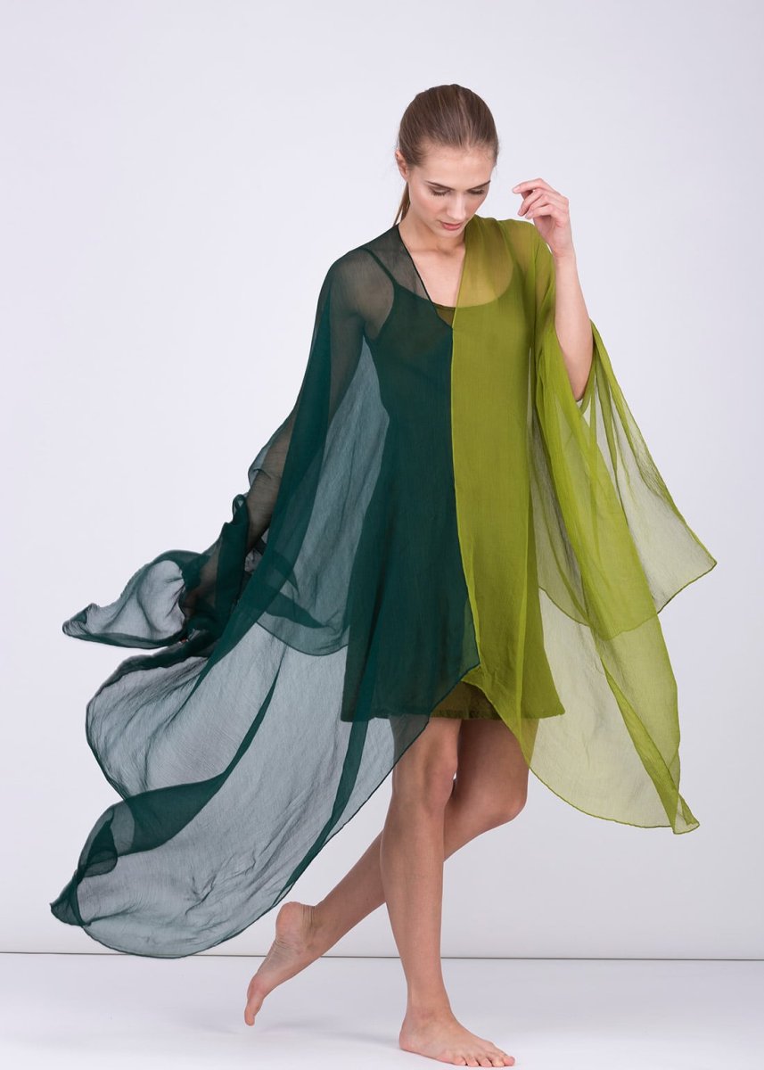 Châle tunique bleu vert en soie OWOW