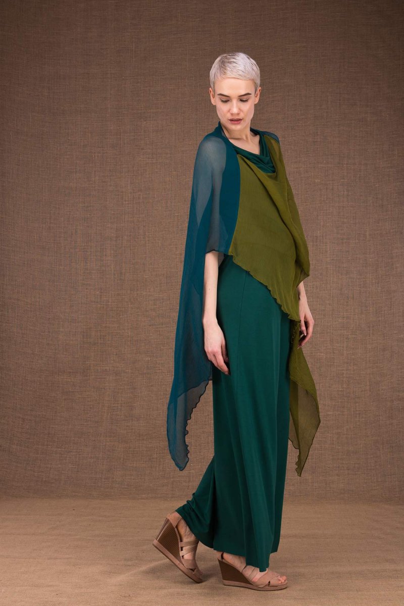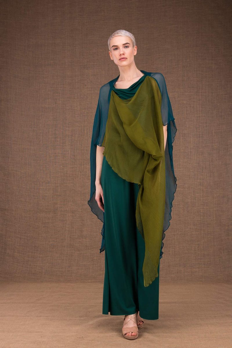 Châle tunique vert émeraude vert clair en soie OWOW. Toujours utile !