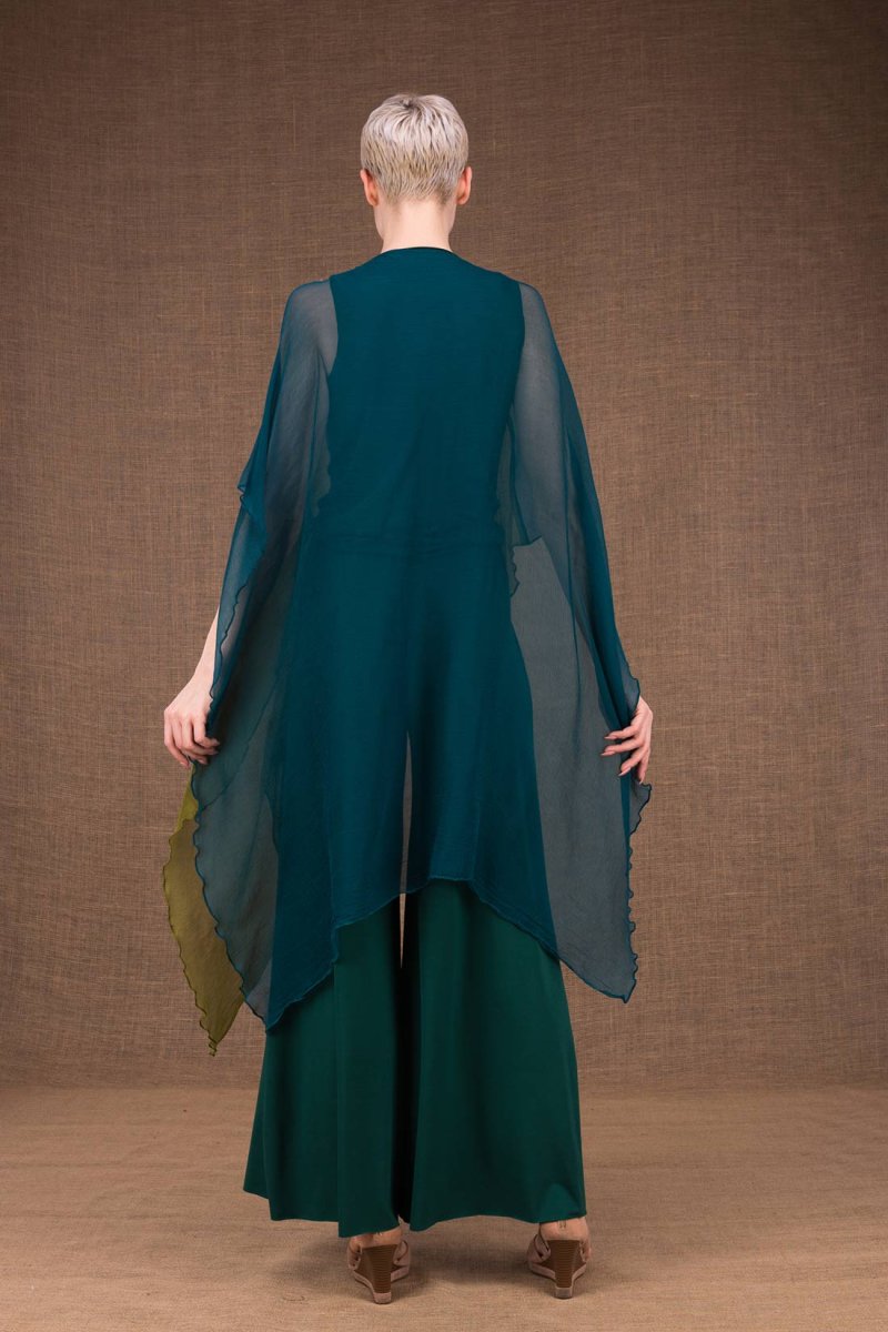 Châle tunique vert émeraude vert clair en soie OWOW