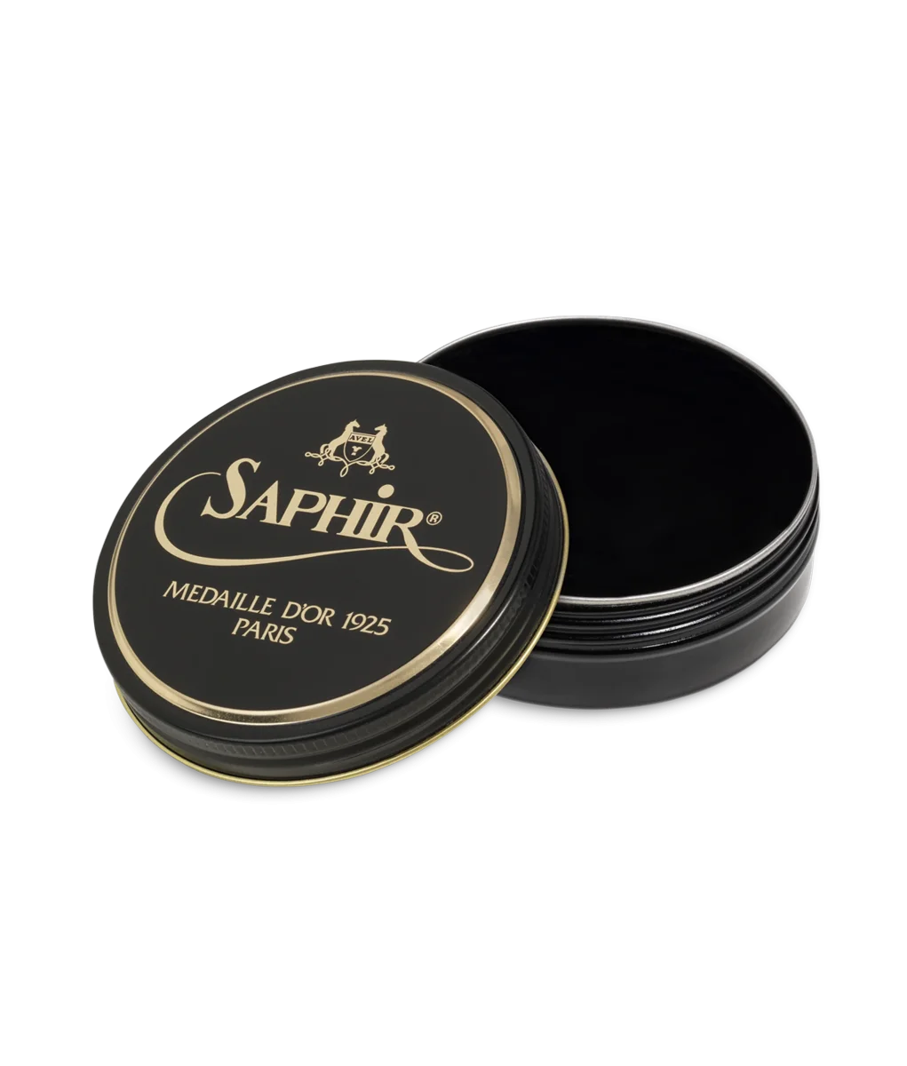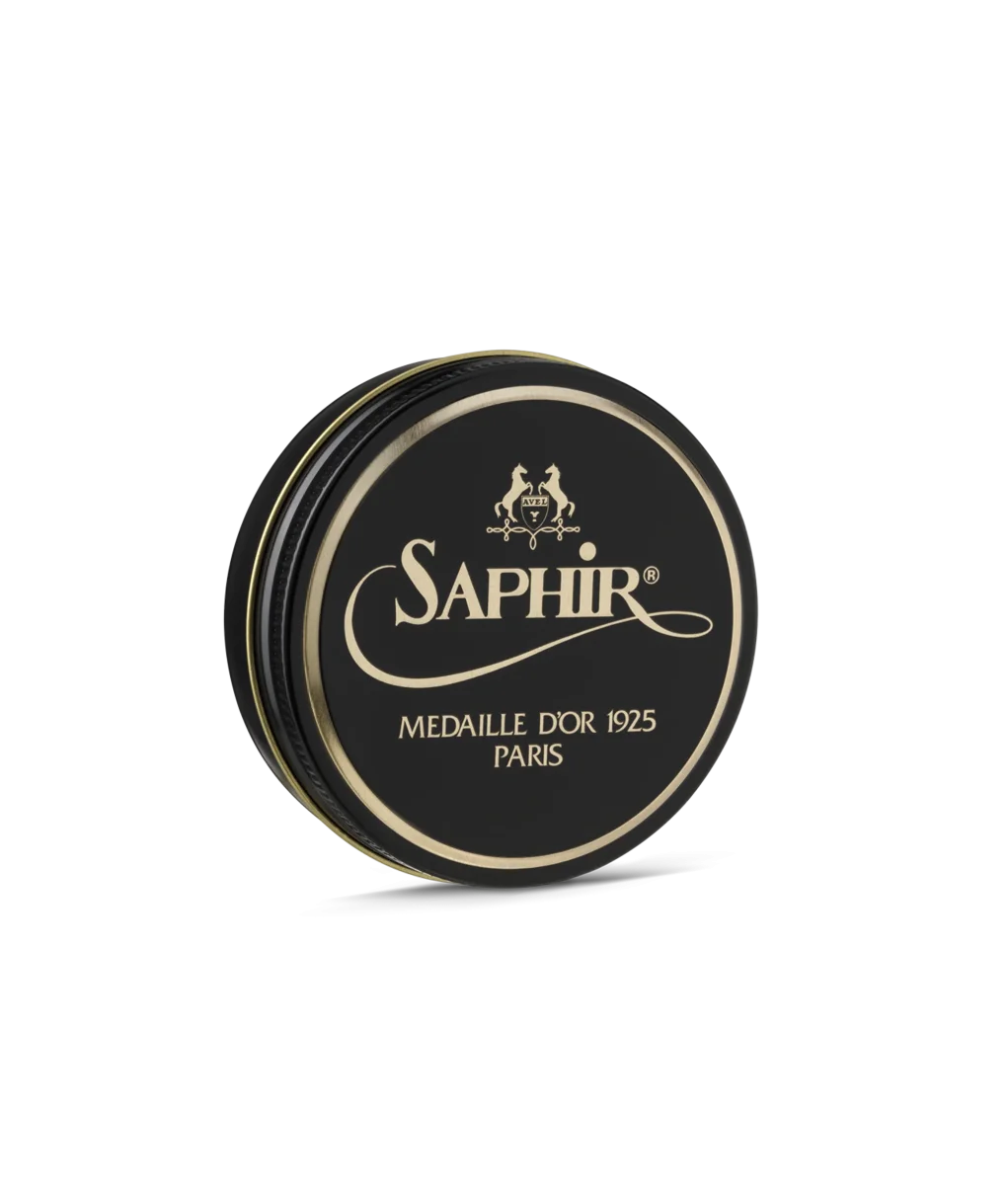 Cirage artisanal en pâte pour cuir lisse et grainé. Formule brillante légèrement teignante, enrichie à la cire d’abeille et à l’essence de térébenthine.
