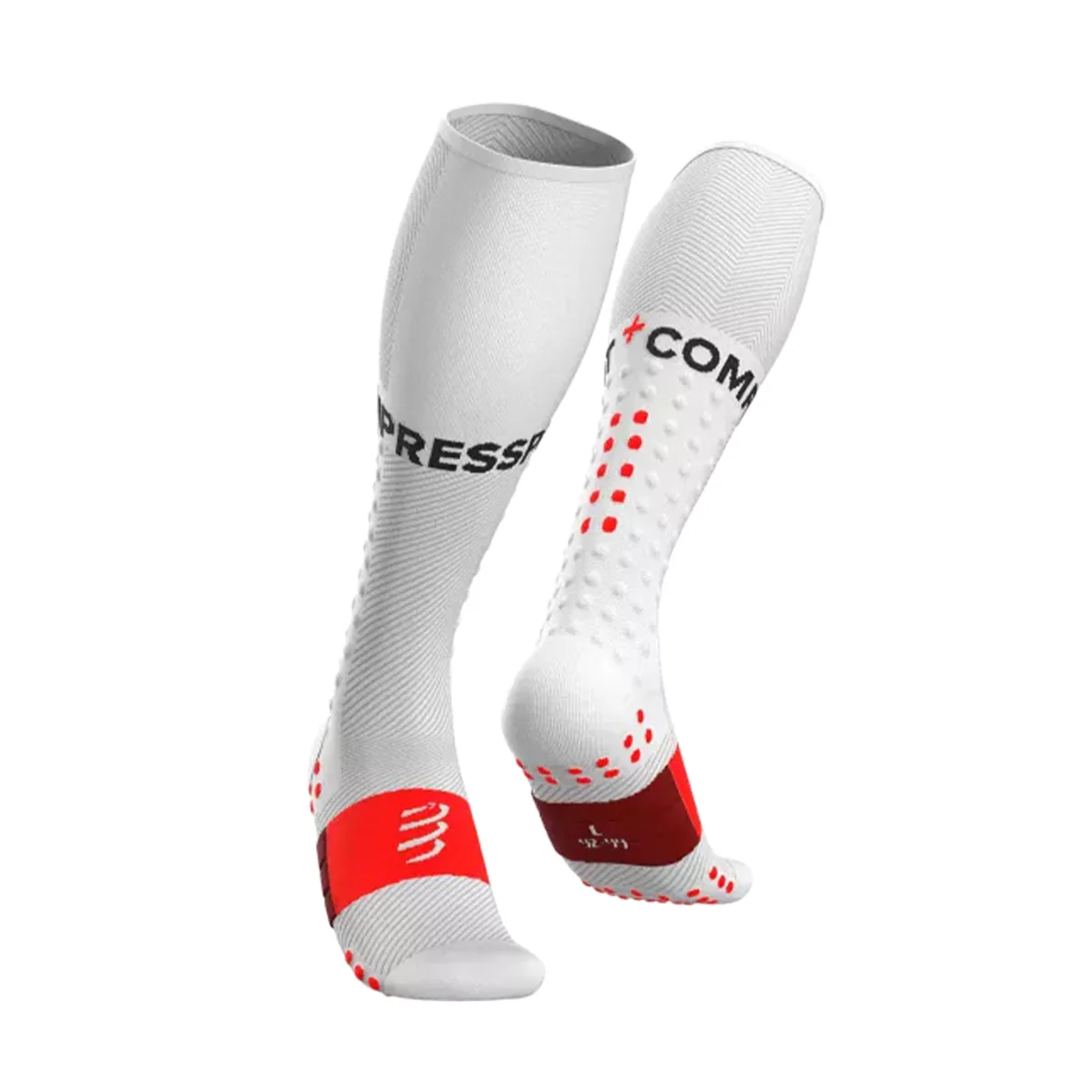 La Compression Sock Black de Compressport est un modèle haut de gamme, full‑longueur (jusqu’au genou), conçu pour réduire les vibrations musculaires, améliorer la circulation sanguine et retarder la fatigue. Grâce à une compression ciblée 360°, des zones de ventilation stratégiques, et un tricot respirant allié à des points grip 3D Dots, elle assure un maintien optimal en course comme en récupération. Fabriquée au Portugal, elle convient aux entraînements intensifs, aux courses ou voyages longue durée.