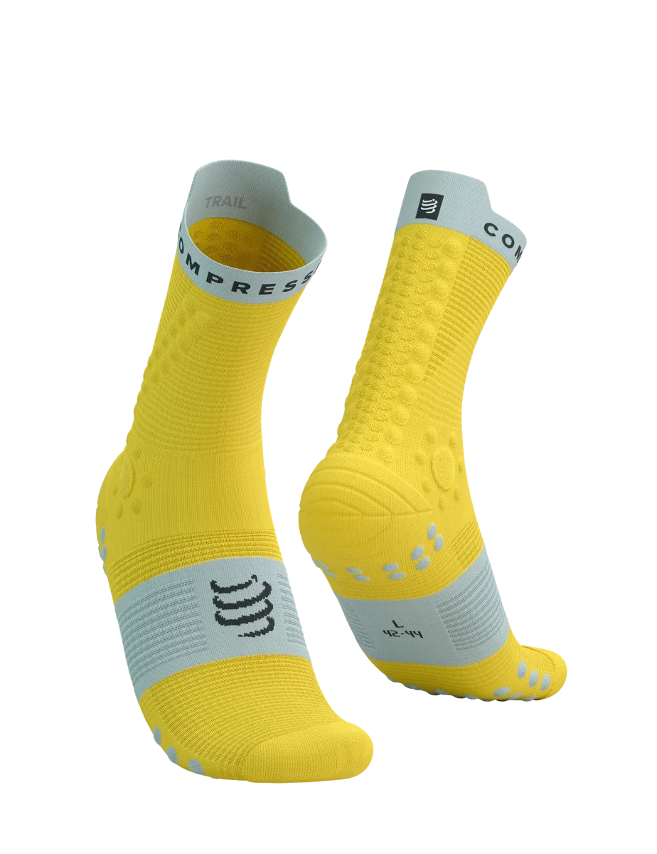 Les Pro Racing Socks V4.0 Trail sont des chaussettes trail ultra technologiques. Avec un padding terry renforcé sur la pointe, un X‑strap autour de la cheville, et des zones de ventilation stratégiques, elles offrent stabilité, amorti et support même sur terrain accidenté. Dotée de 3D.dots anti-choc, de soutien plantaire 360° et d’une nouvelle toe box plus large, cette version Trail est pensée pour les longues distances et les efforts exigeants. Son mesh respirant permet une gestion optimale de la transpiration, tout en garantissant une durabilité renforcée.