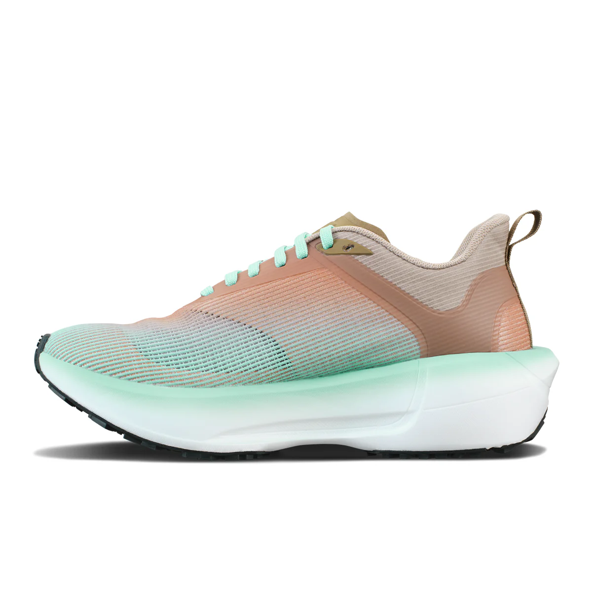 Conception de tige optimisée pour le pied féminin L’empeigne en mesh technique monobloc a été affinée pour offrir un maintien sécurisant sans points de pression. Elle assure une excellente respirabilité et une flexibilité qui s’adapte au gonflement naturel du pied lors des efforts d’ultra-distance.