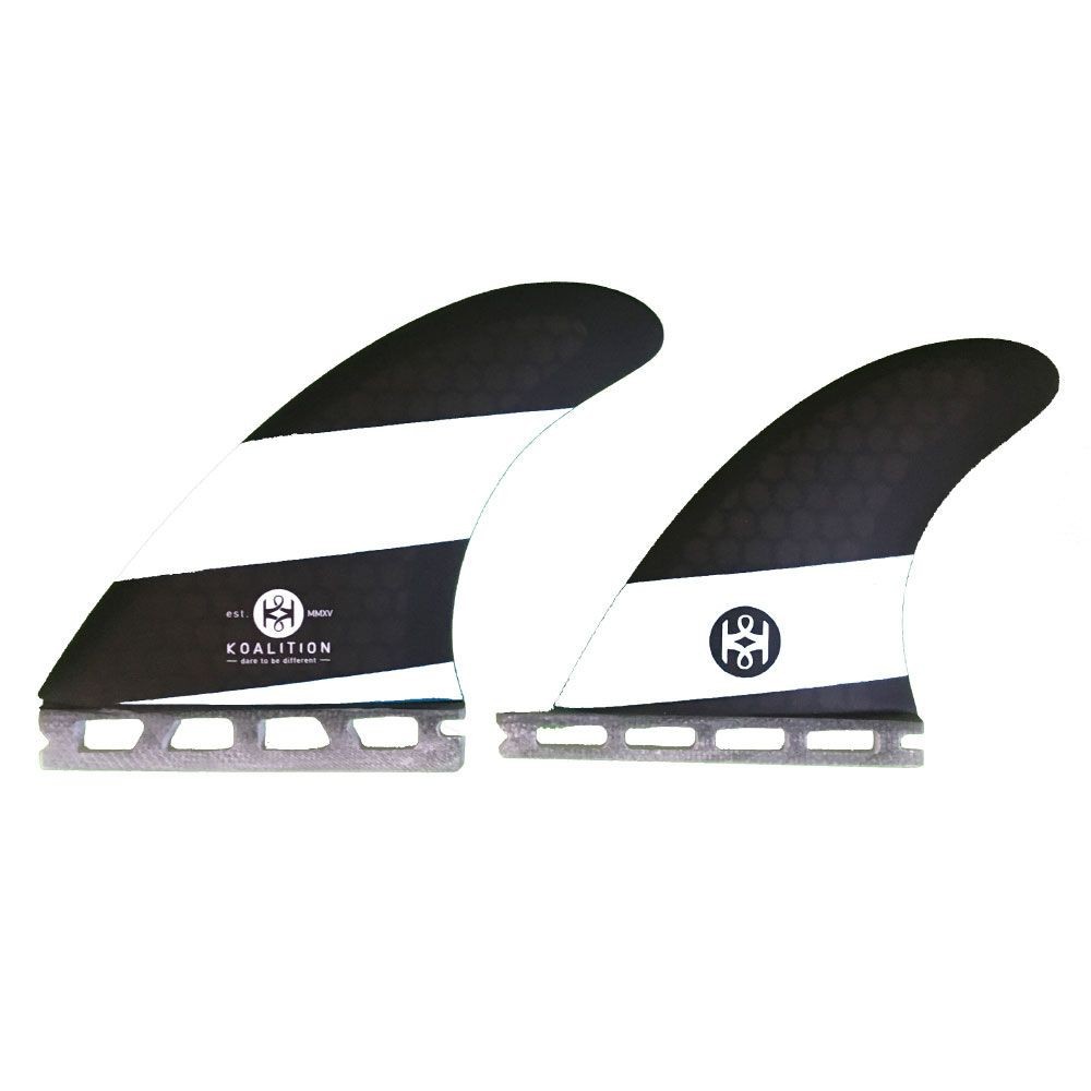 Dérives Surf Tri-Quad Koalition Fins pour une planche équipée Futures. Jeu de 5 ailerons surf, la possibilité de configurer sa planche en Quad ou en Thruster.