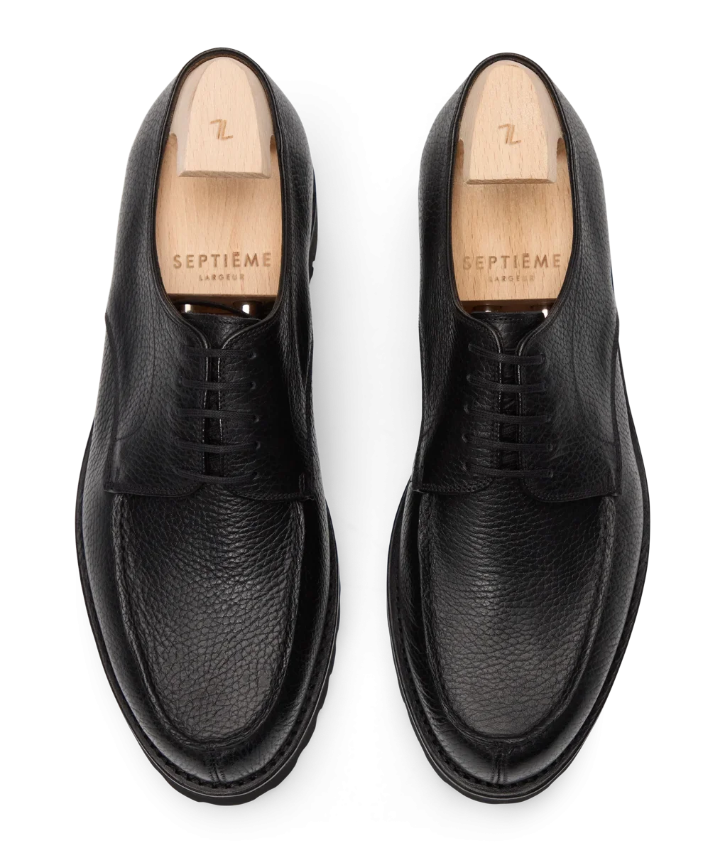 Codes discrets mais affirmés, le Edmond et son plateau dessiné par sa couture main double aiguilles présentent le derby golf sous un nouveau jour. Entre artisanat et tradition, un classique de tout dressing.