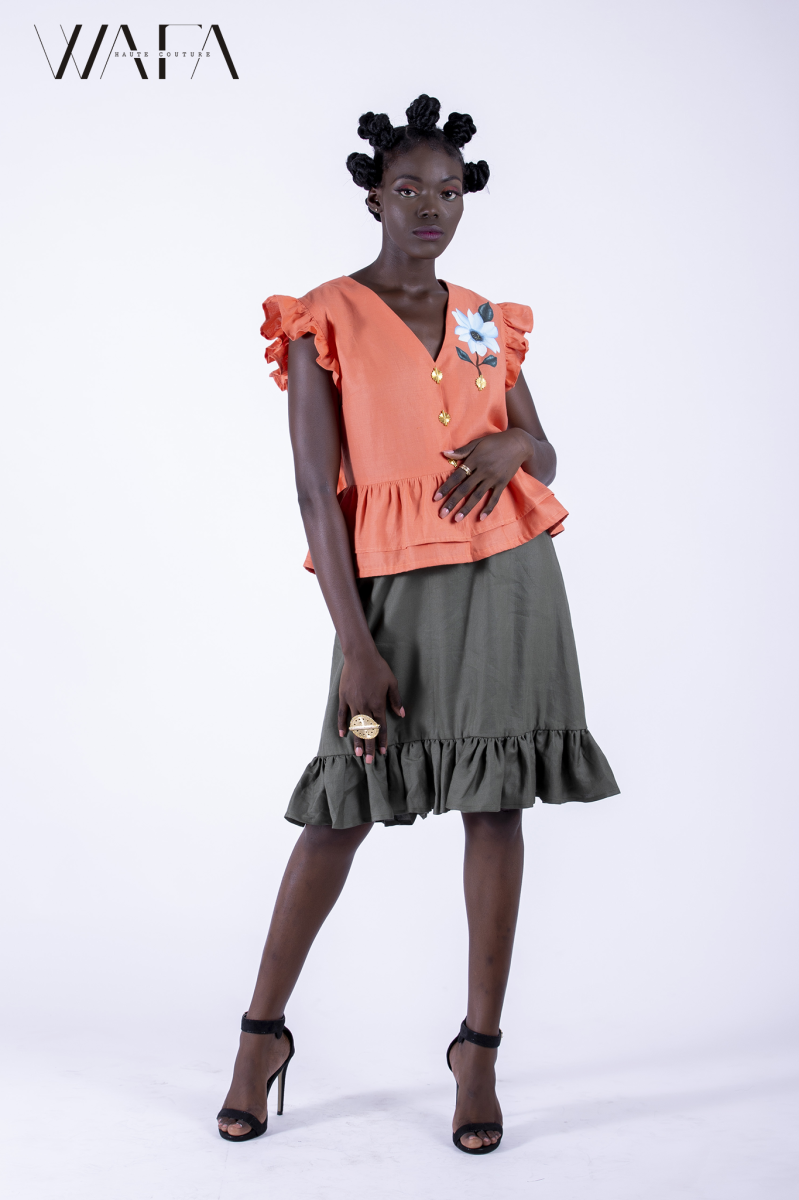 Chemise et pantalon en tissu imprimé motif spécial Wafa – Ensemble femme