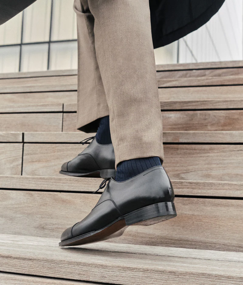 Un grand classique réinterprété par Septième Largeur : le richelieu à bout droit sur une forme ronde, pour un style élégant et intemporel.