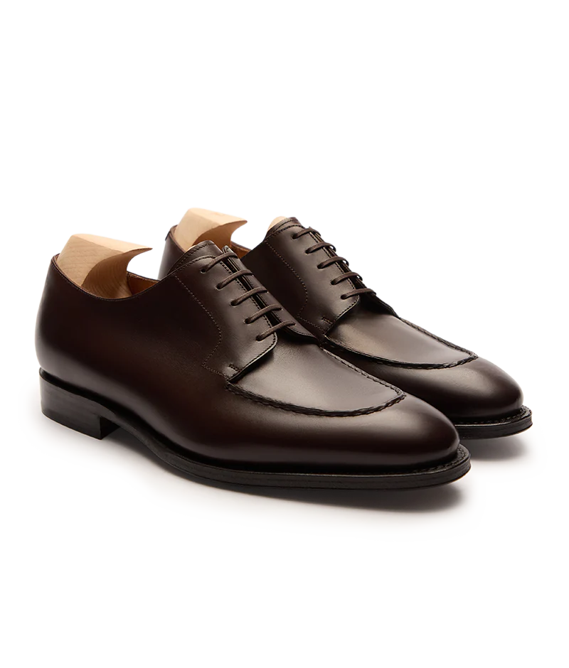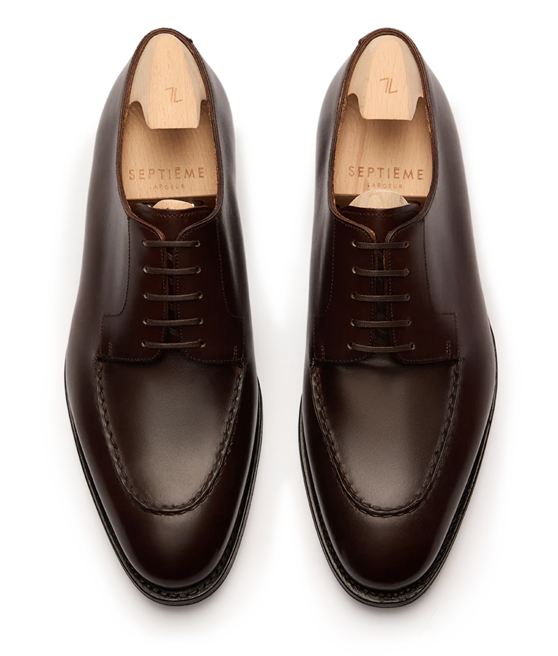 Une couture main doubles aiguilles qui joint les deux empiècements et une autre pincée, inversée sur le bout dur, en toute discrétion à l’avant de la chaussure. Vous aurez le plaisir de voir se révéler cette dernière au fil de l’usure et la patine du temps sur votre soulier.
