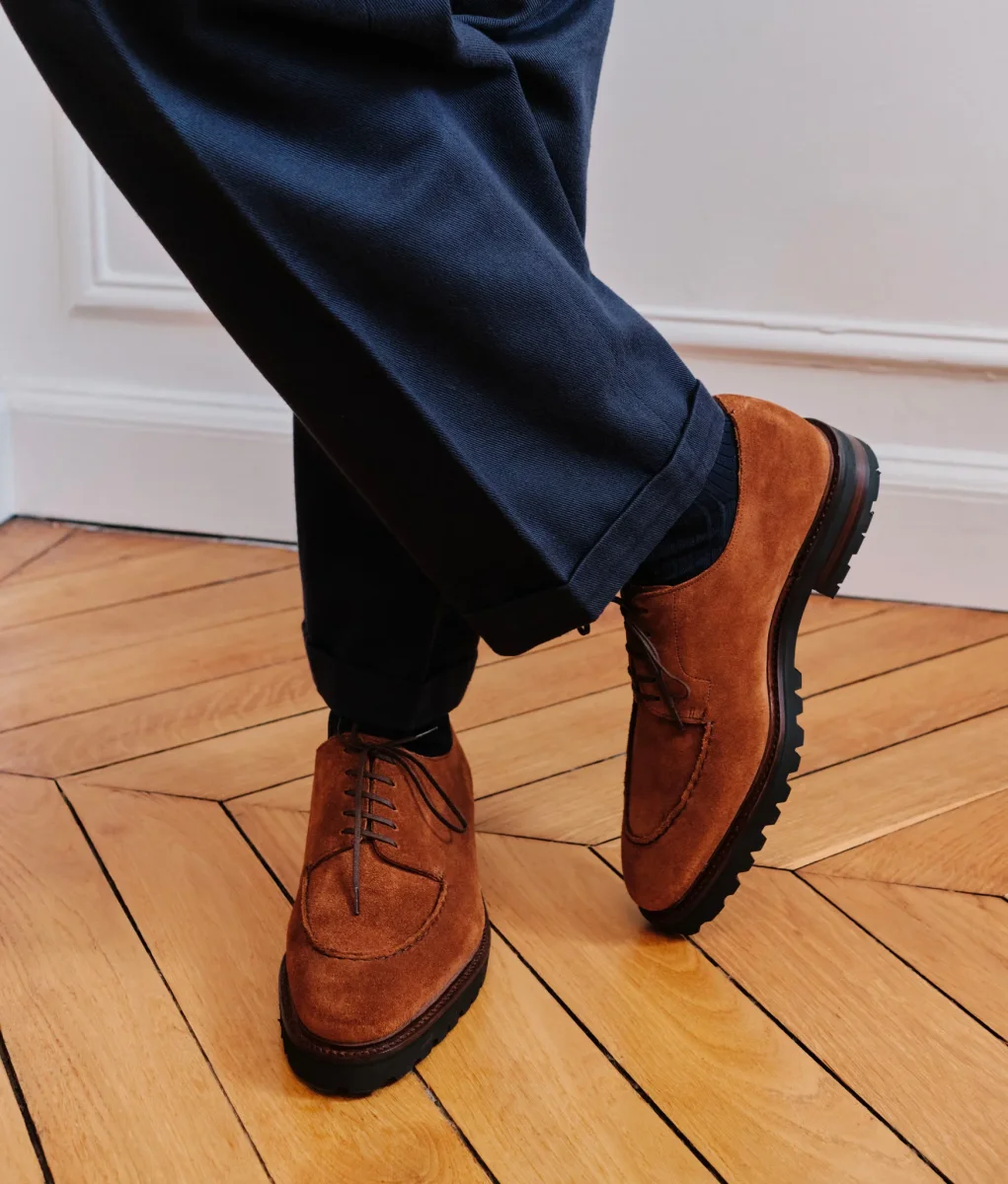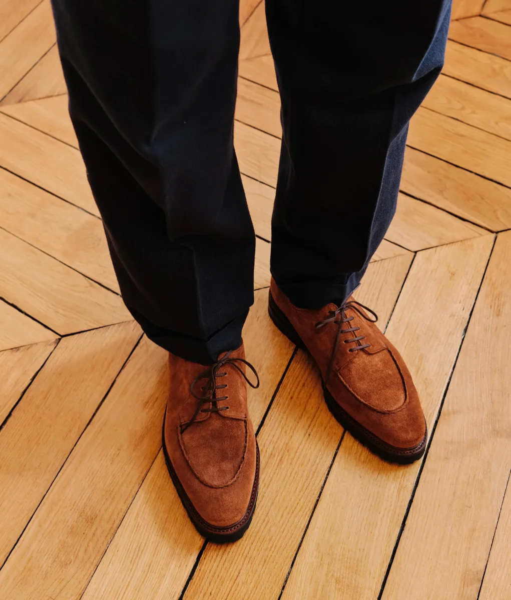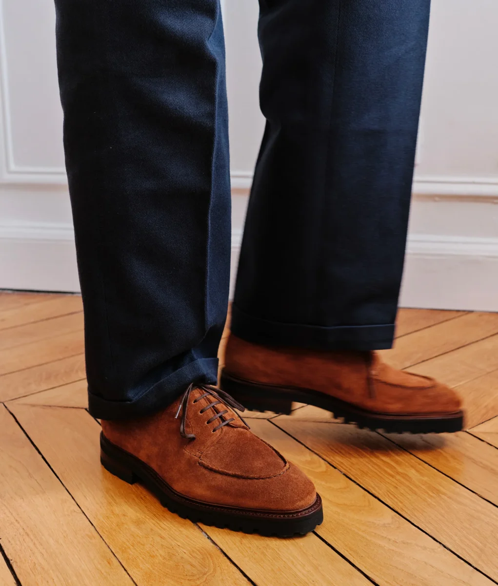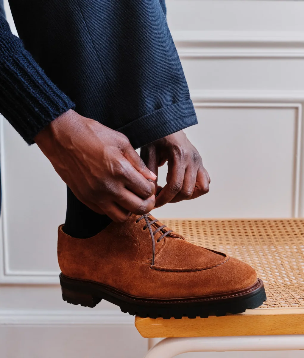 Notre version casual du Gatsby en cuir lisse. Montée en cousu Goodyear sur une semelle gomme Vibram Gumlite®, celle-ci sera à la fois résistante, adhérente tout en restant habillée et discrète.