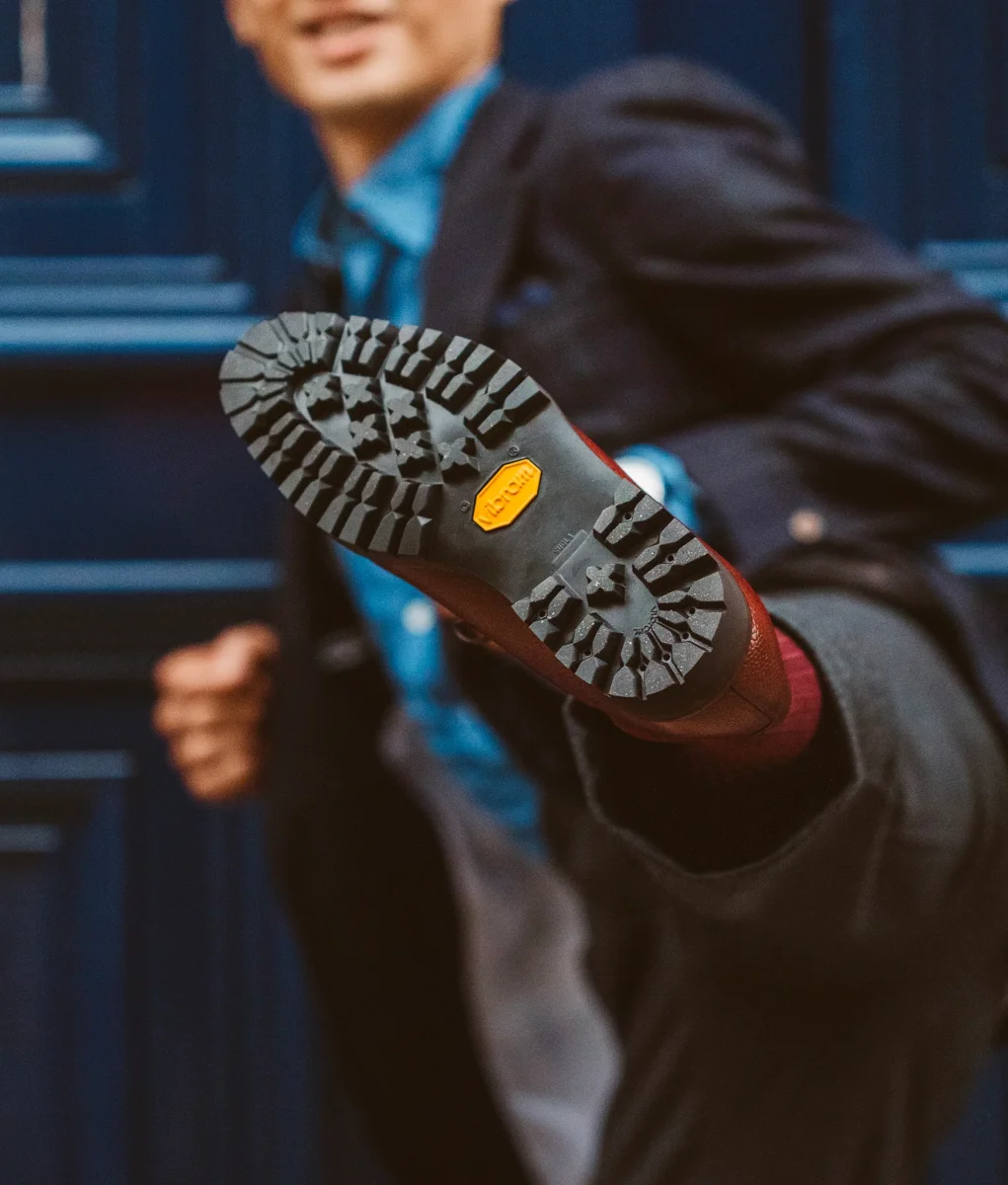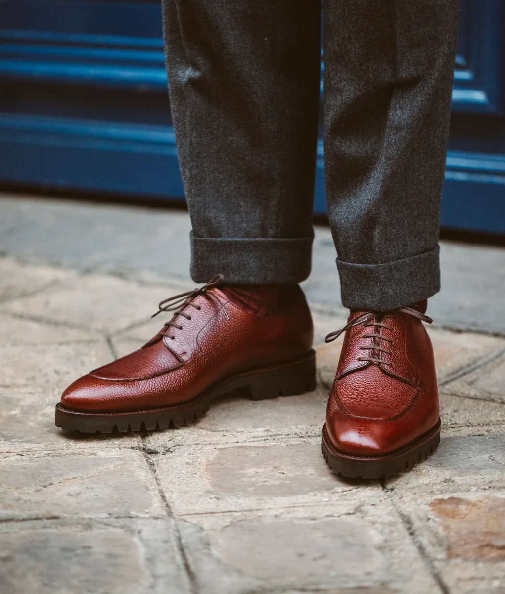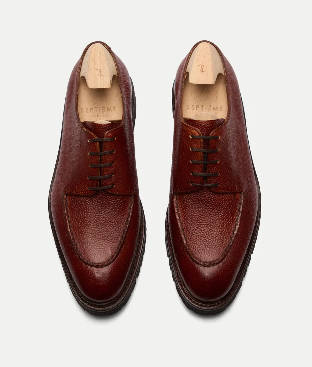 Notre version casual du Gatsby en cuir grainé. Monté en cousu Goodyear sur une semelle gomme Vibram®, cette version Commando sera à la fois résistante, adhérente tout en restant habillée et discrète.