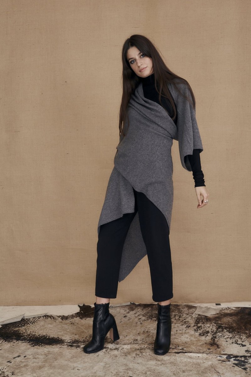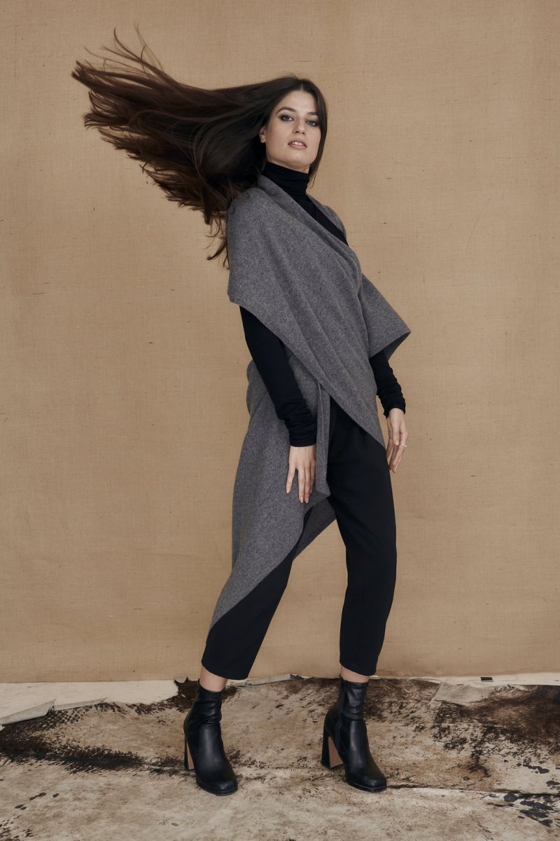 For the winter season this shawl has an original and unique cut: it has a sleeve! So you can wear it as an unstructured cardigan or simply as a shawl. Wrap it around yourself as you please, and get inspired by the photos on our Instagram page: : Boutique ASKA to unleash your fantasy.