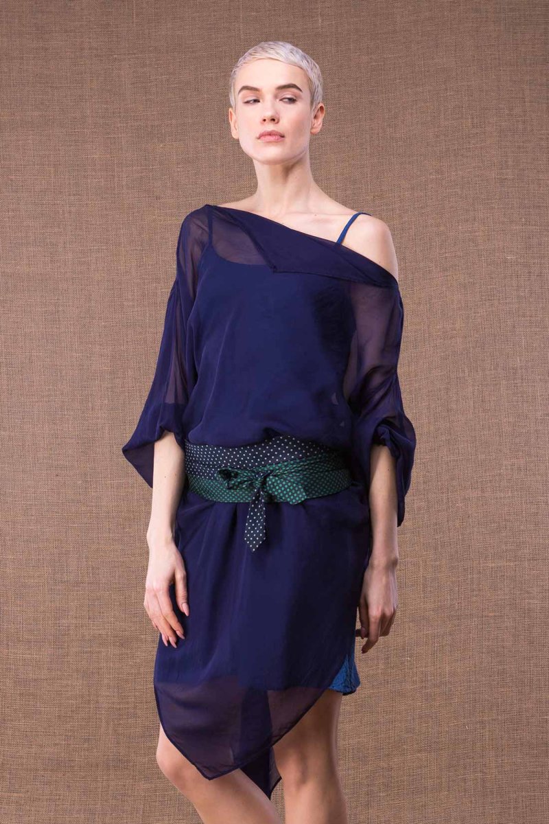 Green and navy blue fabric belt for women OBI-1. Go for the tie belt this season!