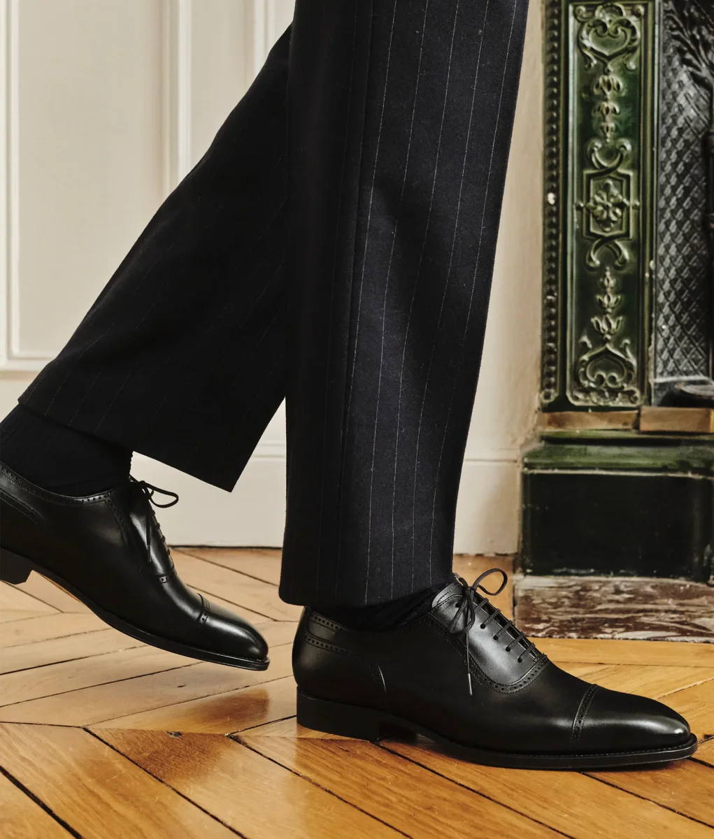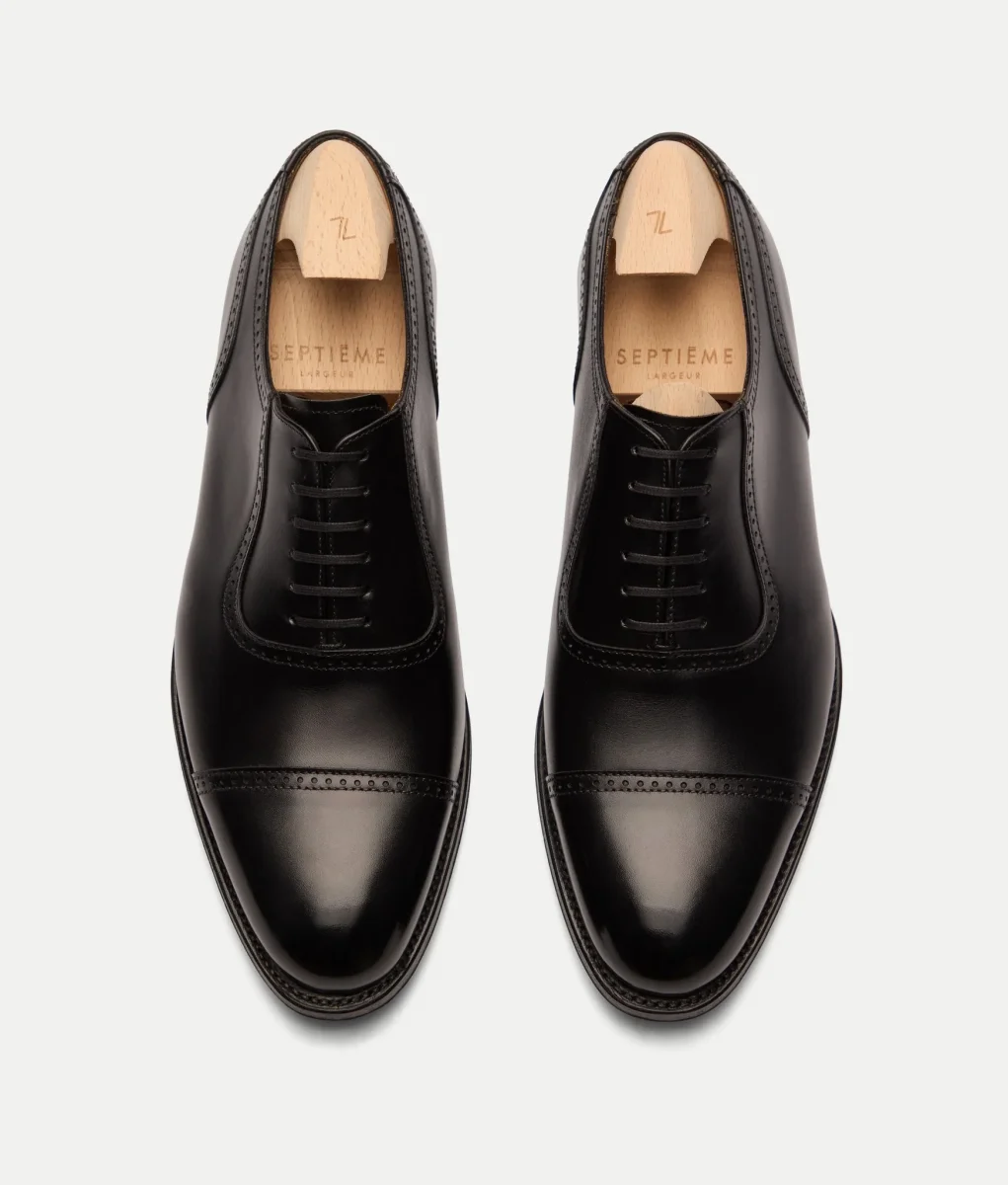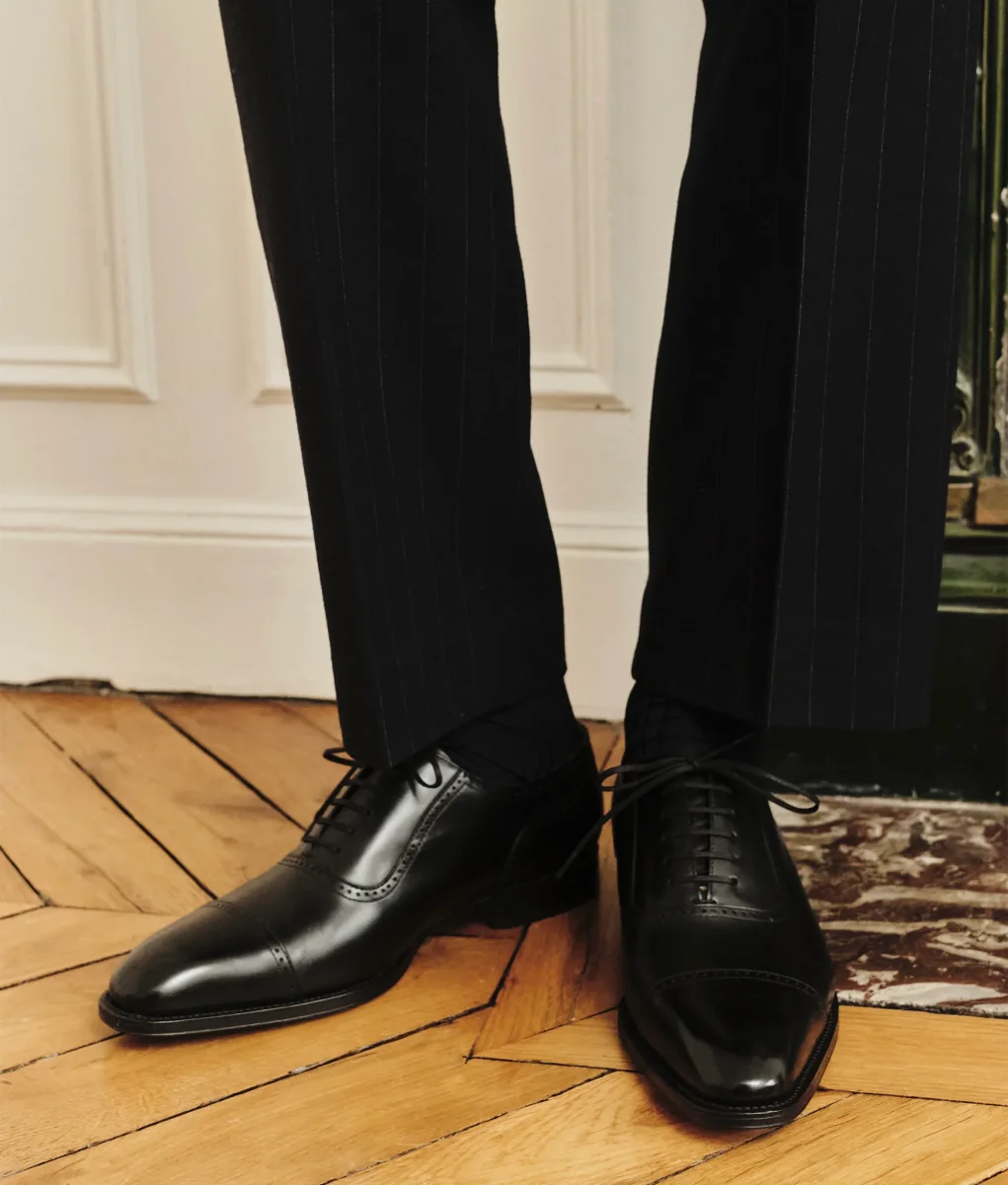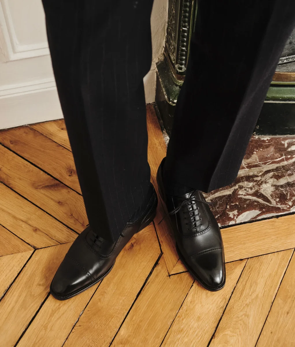 Bout droit et plastron bande perforée, un plaisir pour les yeux ! Le Joffre réussit ce mélange subtil du classique et discret avec une légère touche de modernité et de dessin plus personnalisé. Très polyvalent, il fonctionne avec vos tenues formelles ou casual.