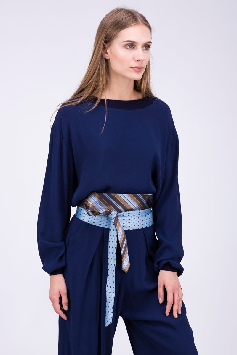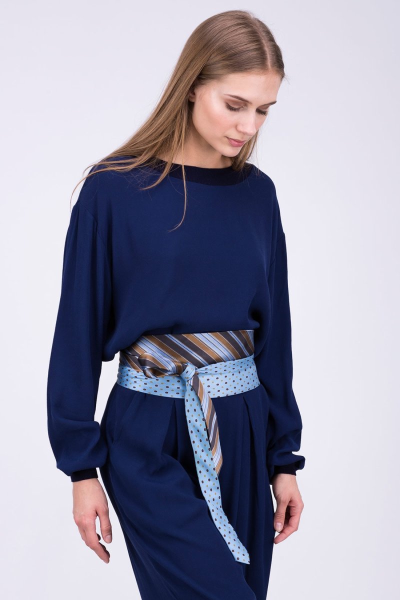 Please note: Each belt is a unique piece assembled by ASKA with, each time, different vintage ties. The belt you see in the photo may no longer be available. Don’t be disappointed, we are able to offer you a belt in the same style.