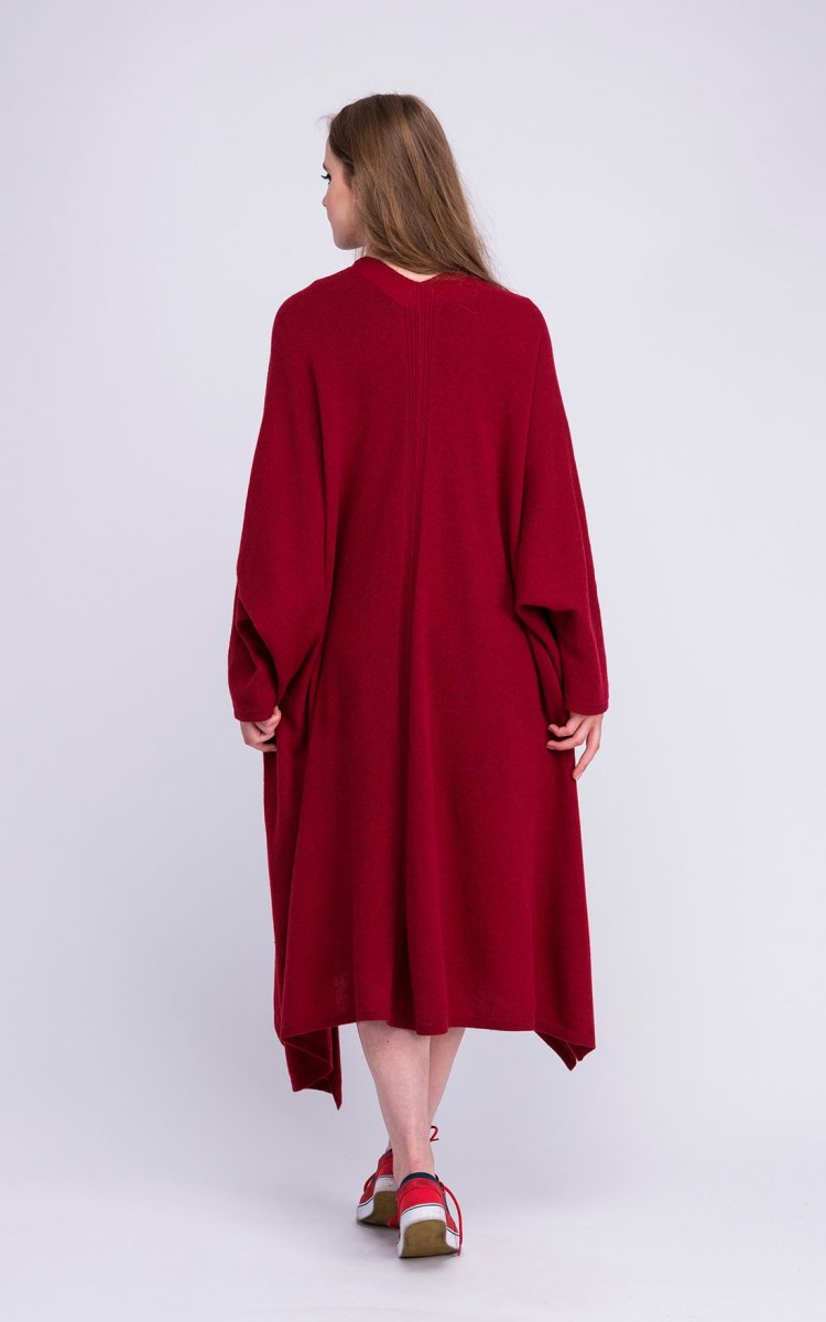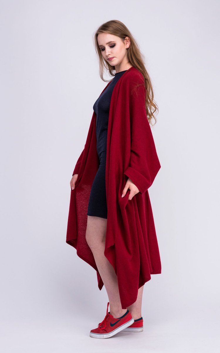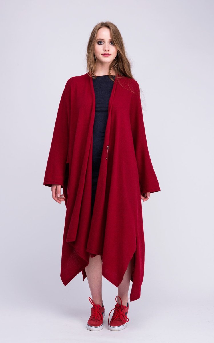 Manteau kimono rouge large pour femme en laine MIMAS. Un manteau fin en maille style kimono.