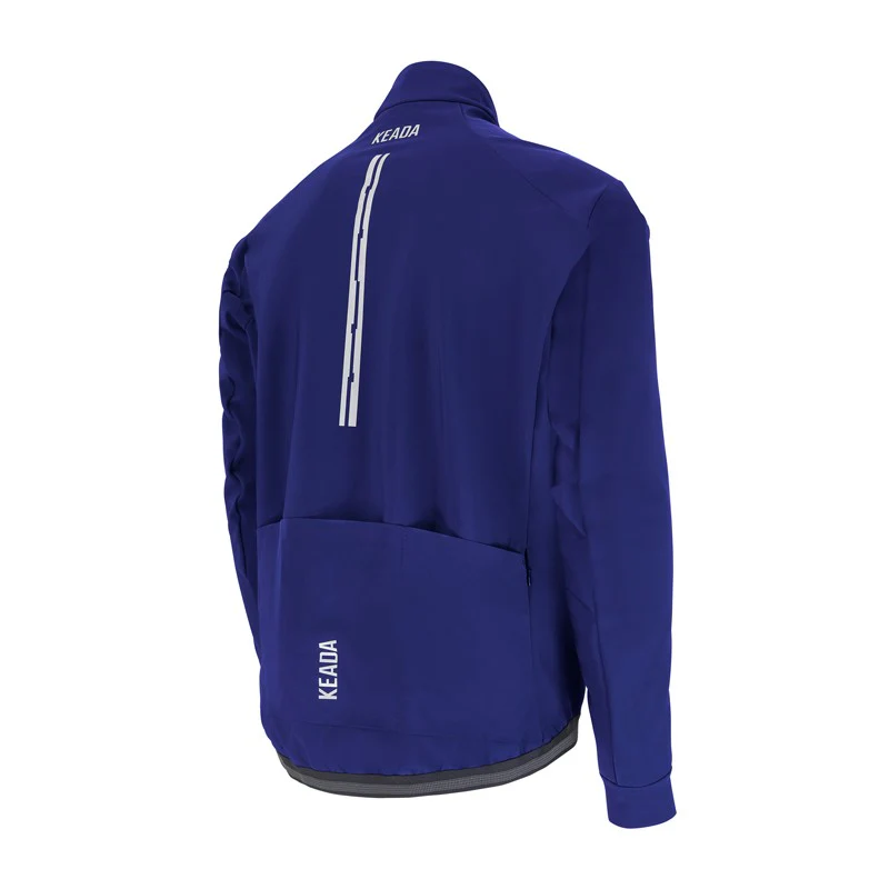 The Keada word-mark is featured on both arms in a signature circle and on the left breast of the jacket. The Keada crest logo is then featured at the top of the neck line.