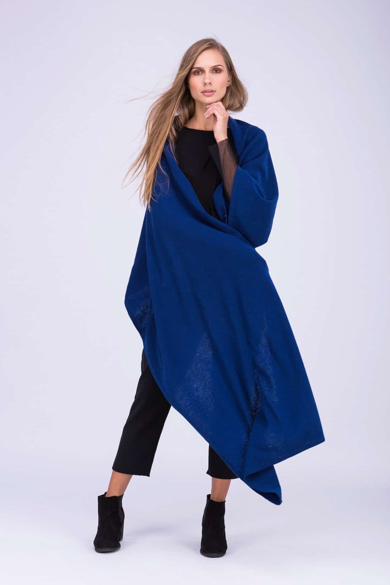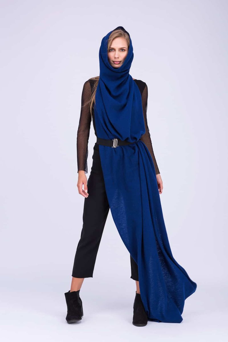 Navy blue large wool shawl TATRY. Play with your imagination!