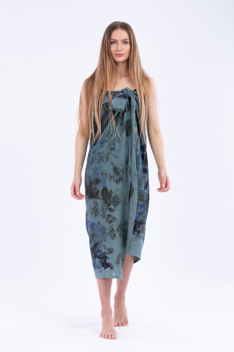 Paréo bleu en coton bio imprimé BORNEO