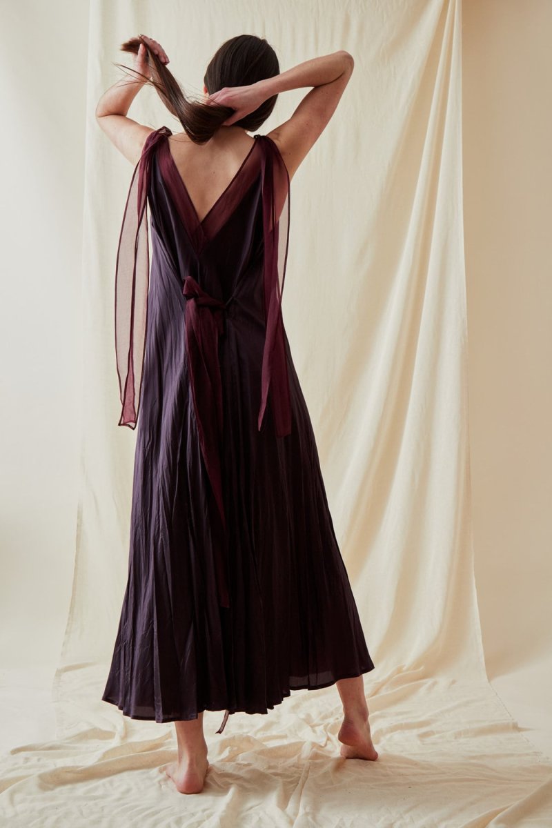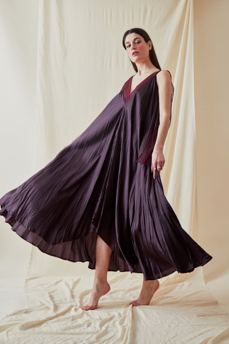 Plum long flared viscose dress RIAMA