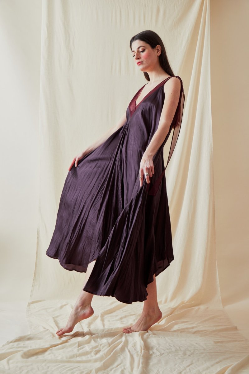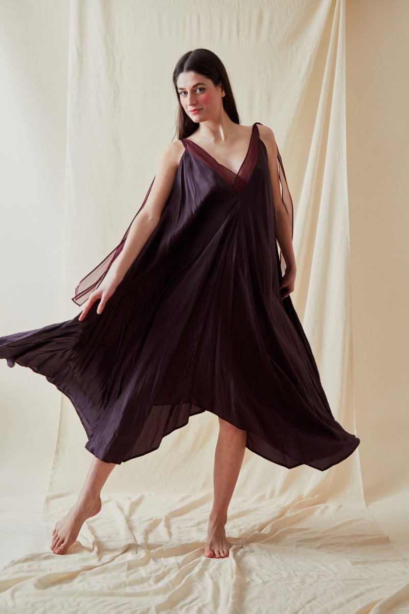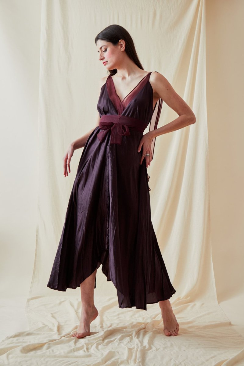 Soyez le premier à laisser votre avis sur “Plum long flared viscose dress RIAMA”