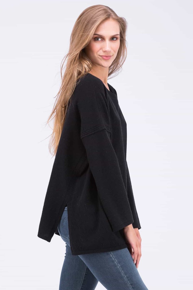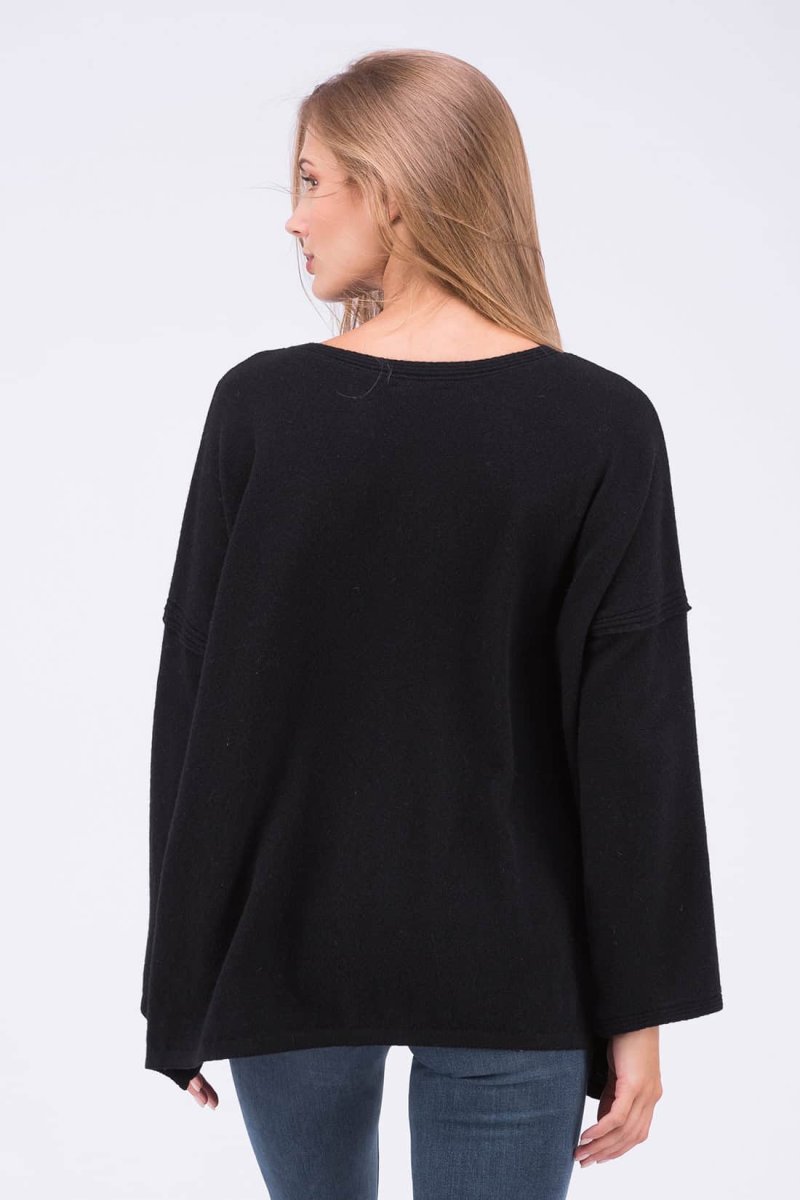 Pull noir oversize large pour femme en laine ALASKA. Notre pull, large et original !