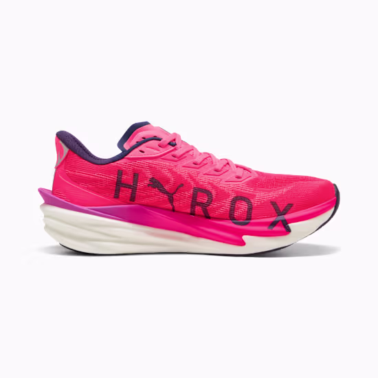 La Puma Deviate Nitro 4 Hyrox est la chaussure idéale pour le jour de la compétition (Race Day). Elle est conçue pour les athlètes qui visent un podium ou un record personnel. Elle excelle sur les formats de course hybrides où la transition entre haute fréquence cardiaque et force brute est constante.