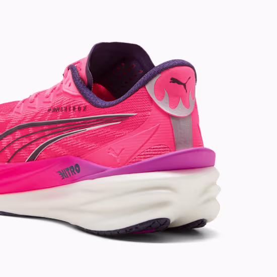 Mousse NITRO™ Elite (Double Densité) La semelle intermédiaire utilise la technologie NITRO™ Elite, la mousse la plus avancée de Puma. Injectée d’azote, elle est incroyablement légère et offre un rebond explosif. Cette version 4 propose un amorti plus résistant à la compression, essentiel pour ne pas s’écraser sous le poids des charges lourdes lors des exercices de fitness.
