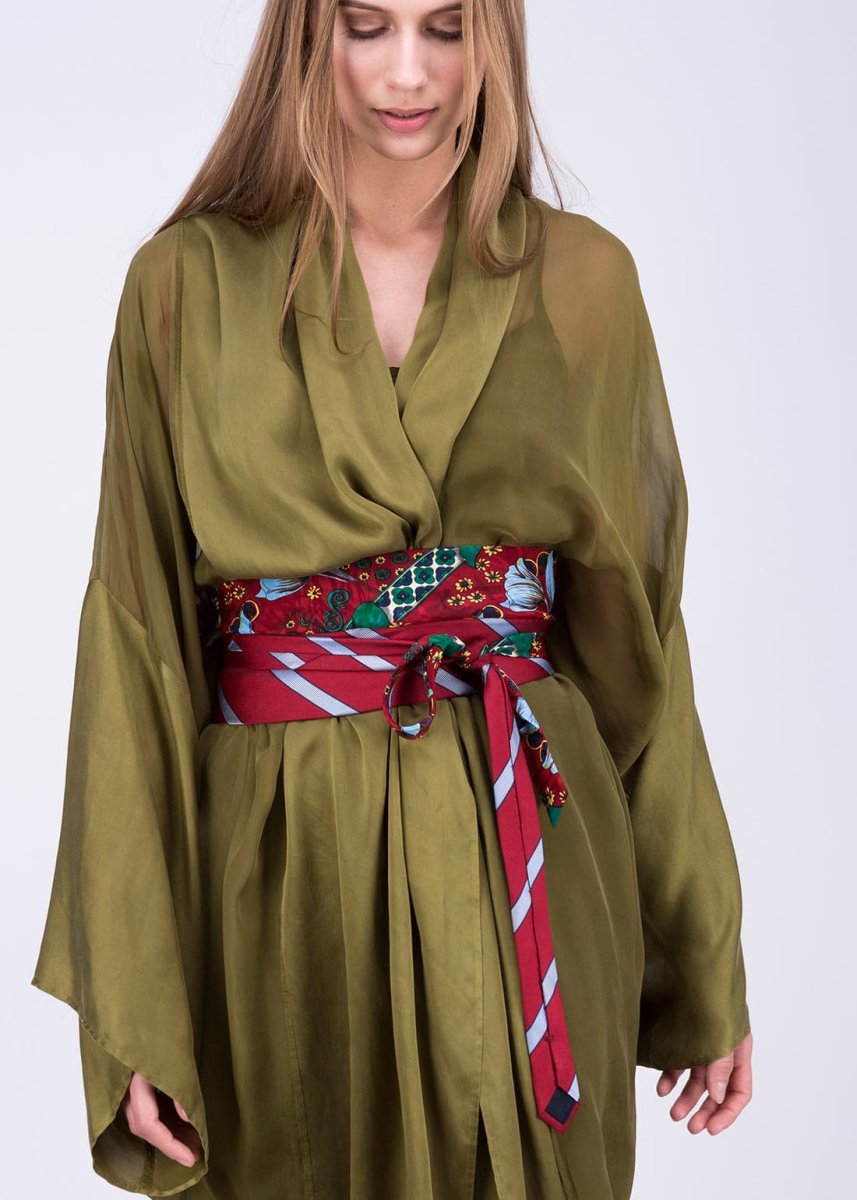 Red and green fabric belt for women OBI-11. Go for the tie belt this season!