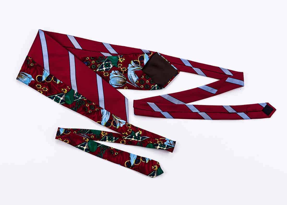 Please note: Each belt is a unique piece assembled by ASKA with, each time, different vintage ties. The belt you see in the photo may no longer be available. Don’t be disappointed, we are able to offer you a belt in the same style.