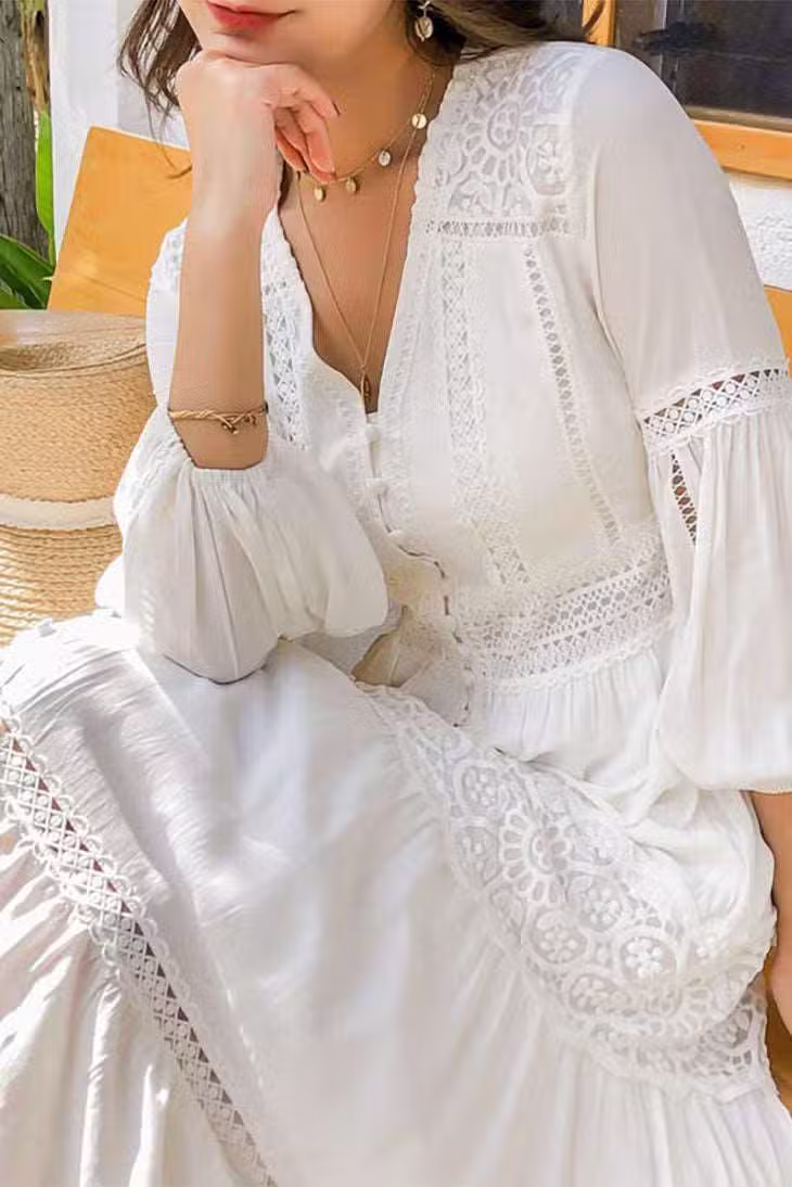 - Encolure: Col en V, flatteur et mettant en valeur le décolleté.