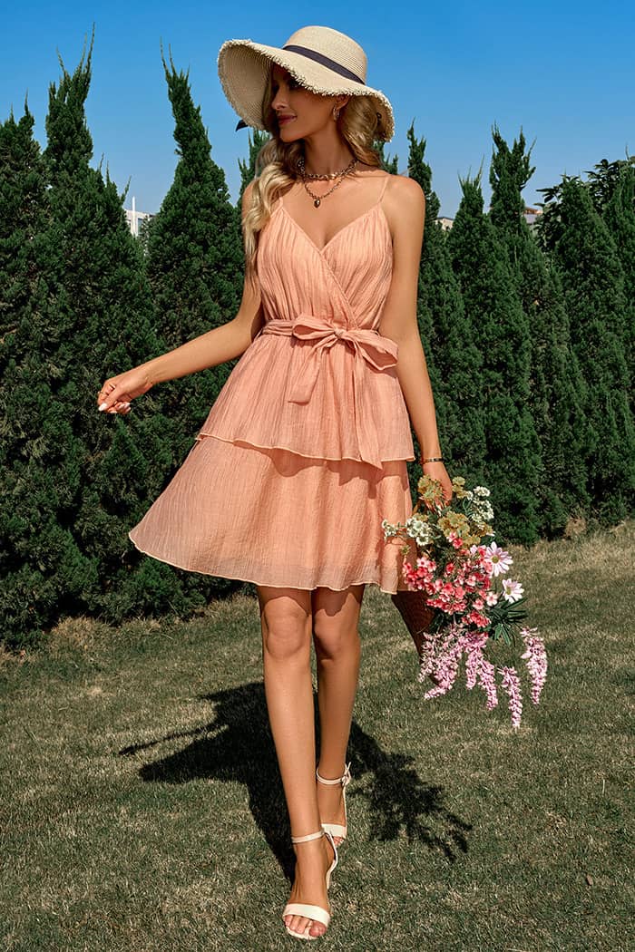 Cette robe de cérémonie déborde de fraîcheur et de féminité, parfaite pour un mariage champêtre. Sa coupe courte affine la silhouette avec élégance et sa taille ceinturée apporte une touche habillée. Les bretelles spaghetti et l’encolure croisée en V ajoutent une touche chic et romantique. Commande-la dès maintenant pour une tenue de demoiselle d’honneur irrésistible !