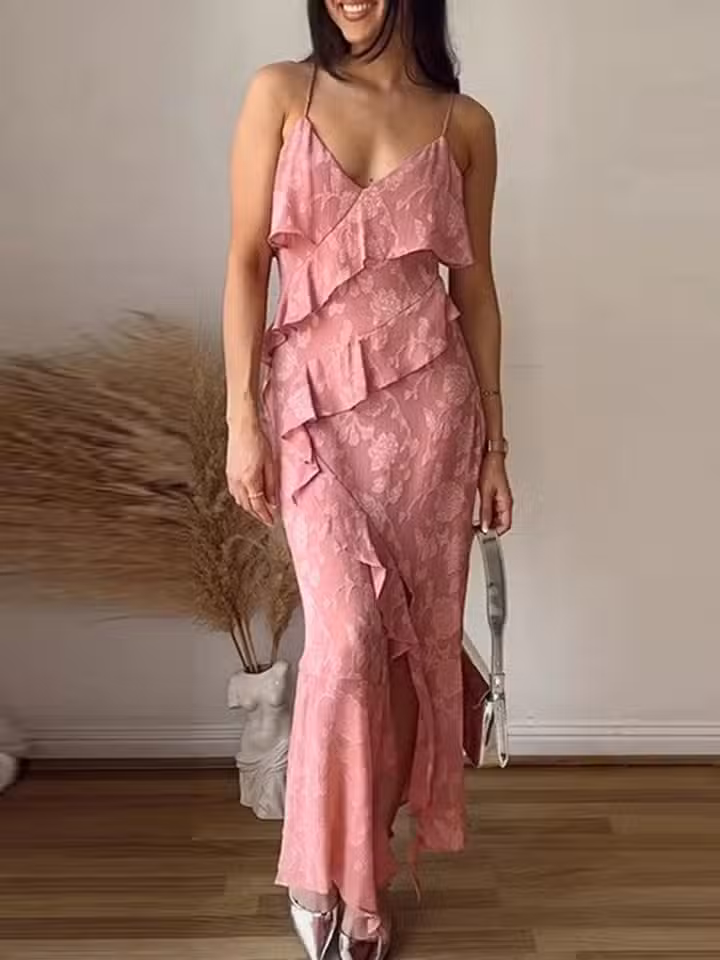 Caractéristiques de la Robe Longue D’été À Volants Jacquard Floral