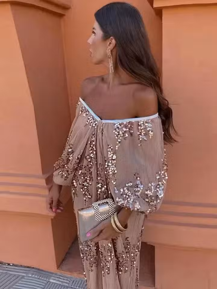 Caractéristiques de la Robe Longue Sequins Caramel