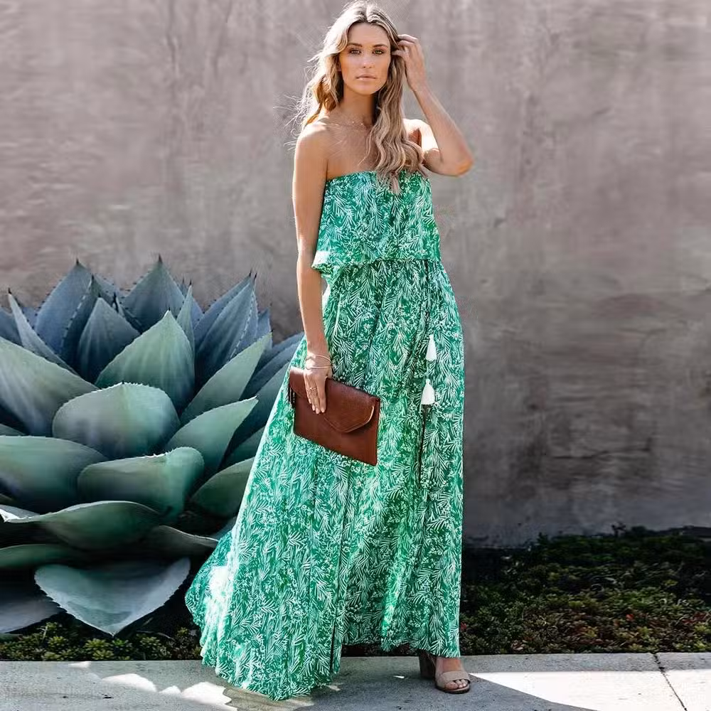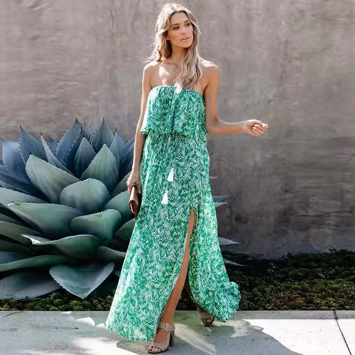 Soyez le premier à laisser votre avis sur “Robe Longue Verte Bustier Sans Manches À Fleurs”