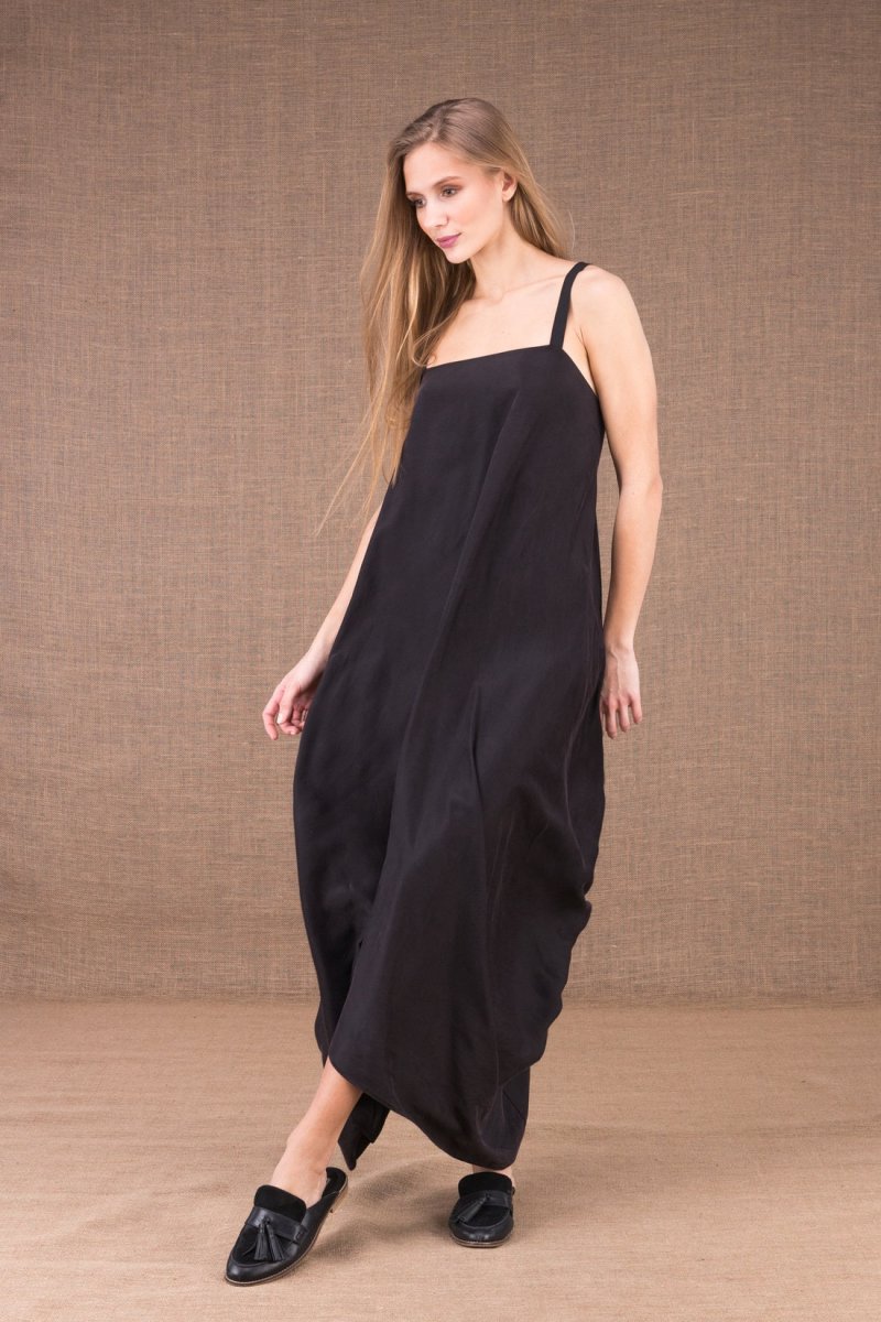 Soyez le premier à laisser votre avis sur “Robe noire longue dos nu en satin de soie IZA”