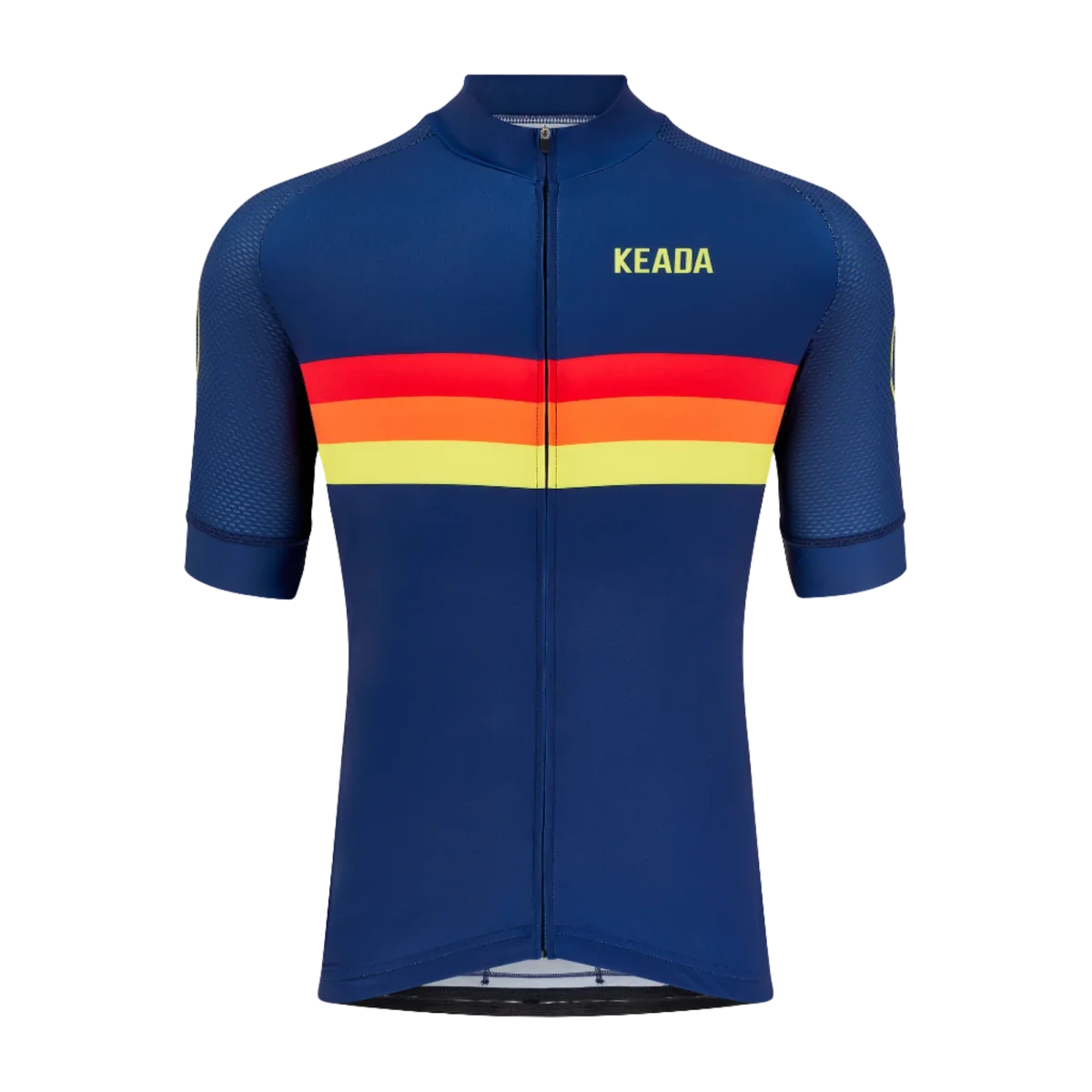 Our Sunrise Jersey design celebrates all that we love about cycling culture. To make this Jersey unique, we took some nice aesthetic details like the tri-colour chest. The sleeve is also cuffed with a three colour finish for refined detail. The Keada word-mark is featured on both arms in a signature circle and on the left breast of the jersey. The Keada crest logo is then featured at the top of the neck line.