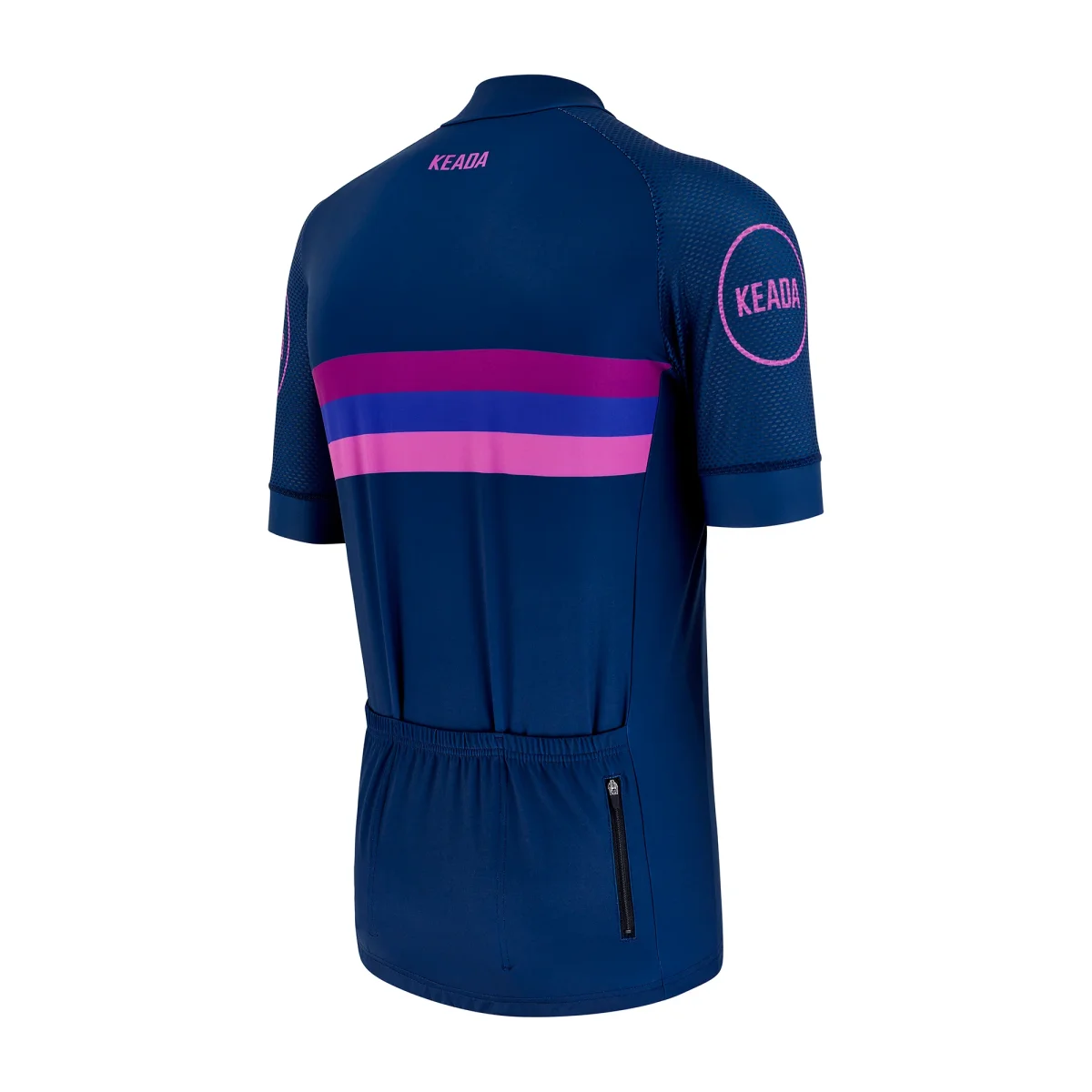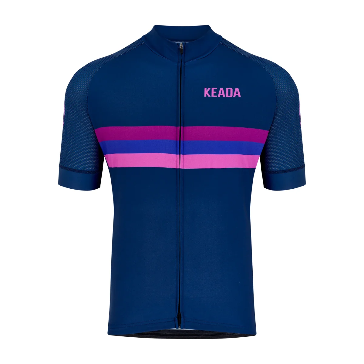 Our Sunset Jersey design celebrates all that we love about cycling culture. To make this Jersey unique, we took some nice aesthetic details like the tri-colour chest. The sleeve is also cuffed with a three colour finish for refined detail. The Keada word-mark is featured on both arms in a signature circle and on the left breast of the jersey. The Keada crest logo is then featured at the top of the neck line.