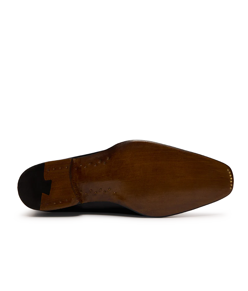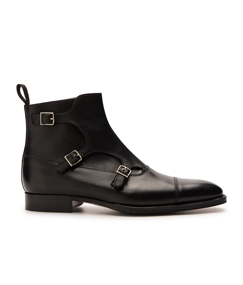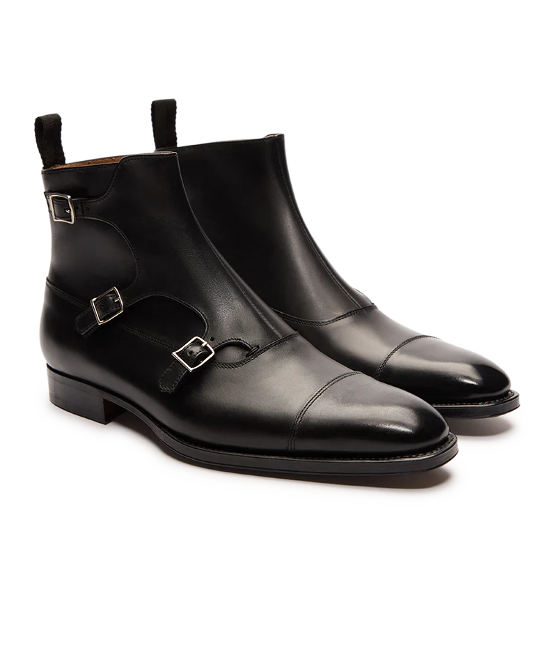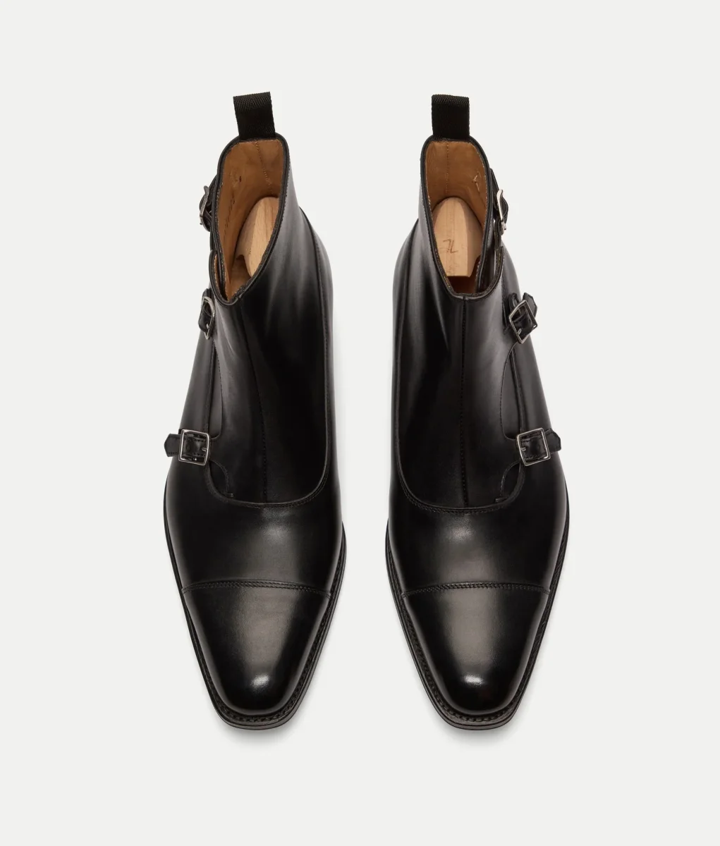 Né en 2013, modèle signature de la Maison, le Tobar fut le premier triple boucles. Pure inspiration de la Belle Epoque, cette bottine Balmoral est ainsi dotée de trois boucles.