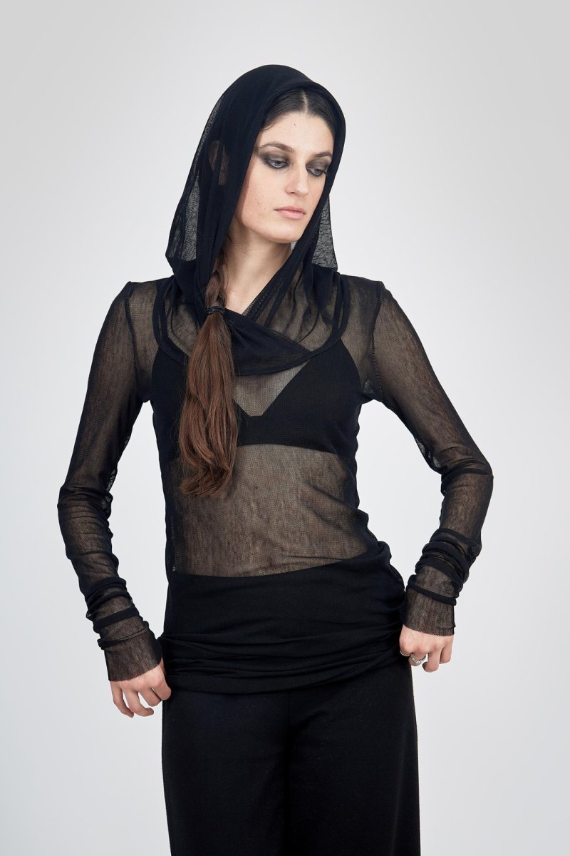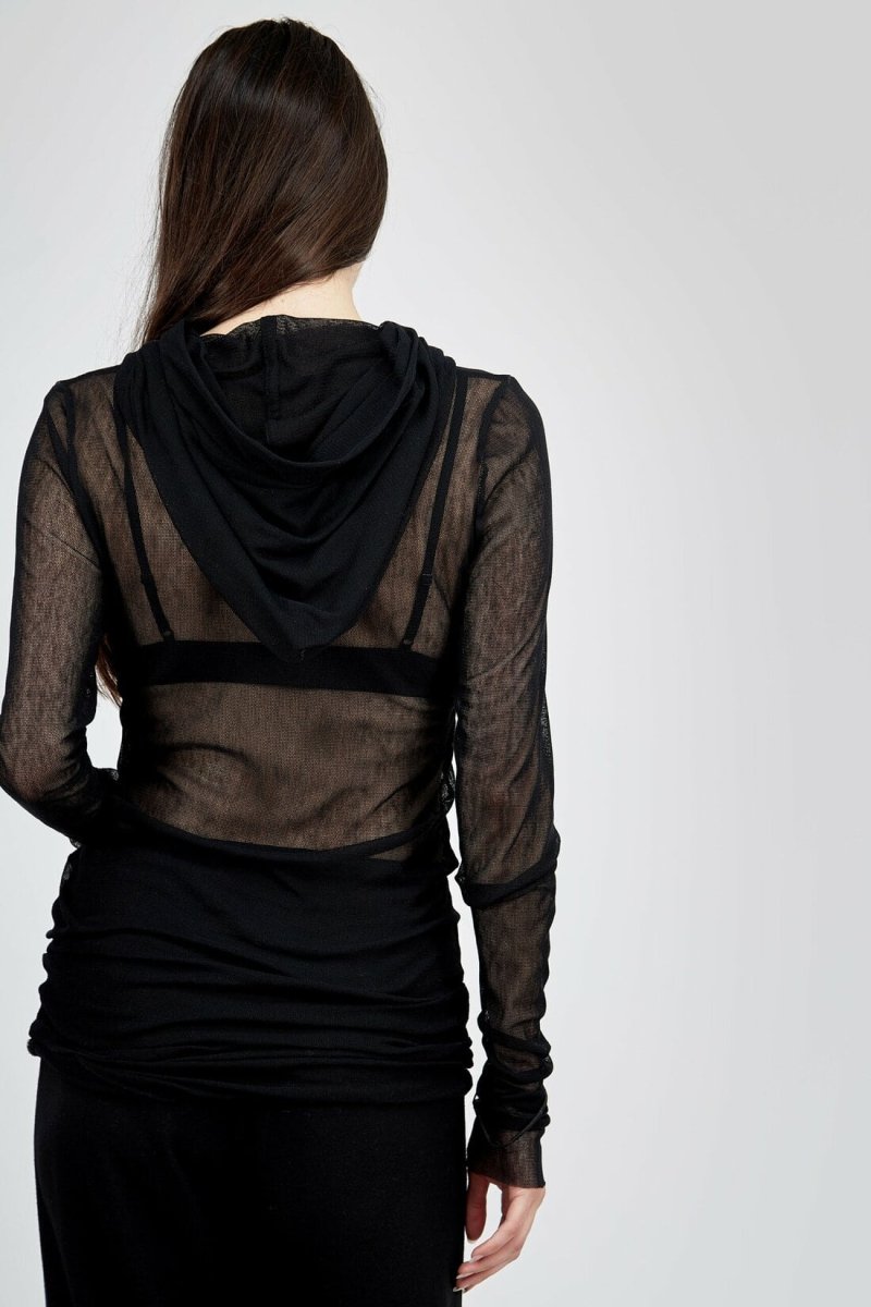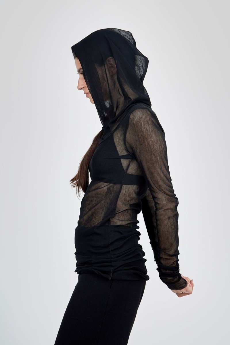 Tunique à capuche hoody en résille noire pour femme MOON