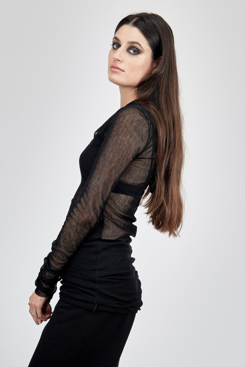 Black long sleeve mesh t-shirt for women BAIKA
