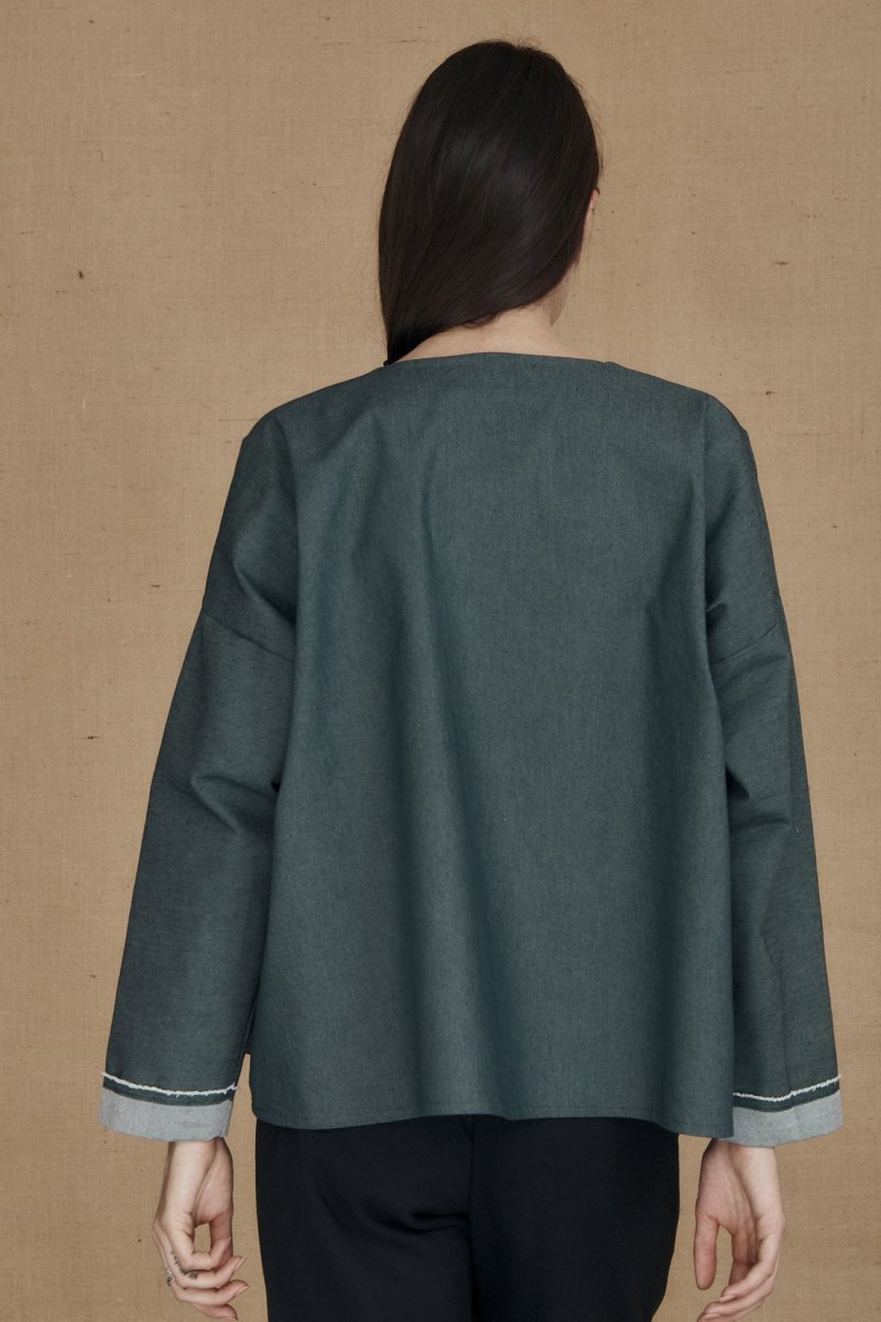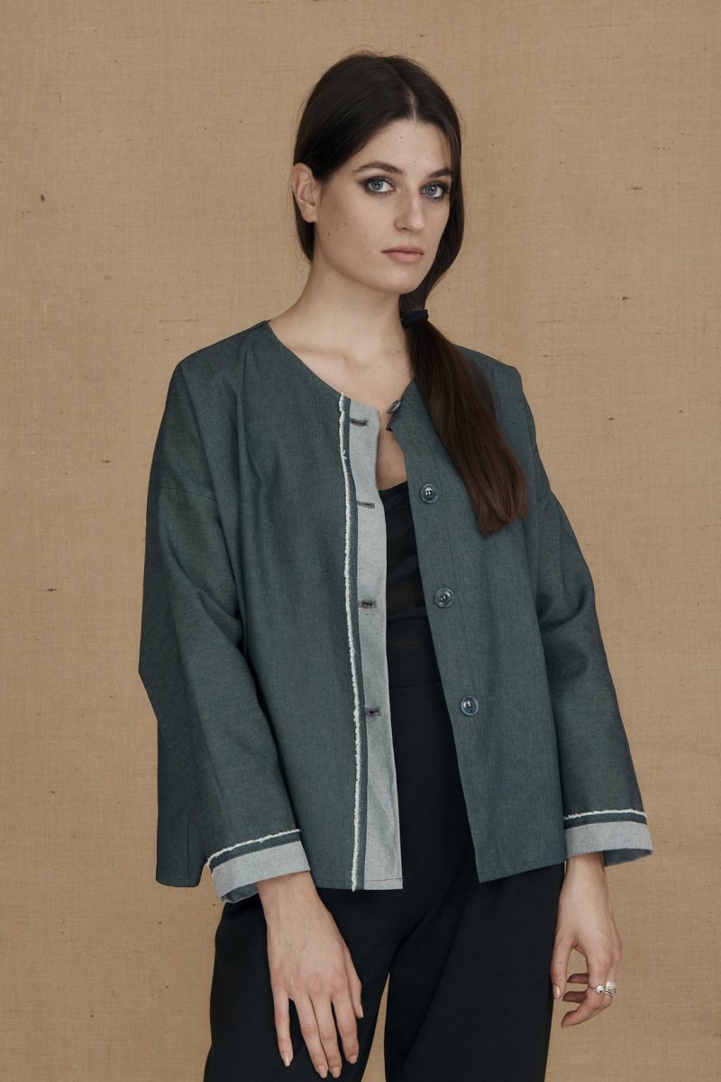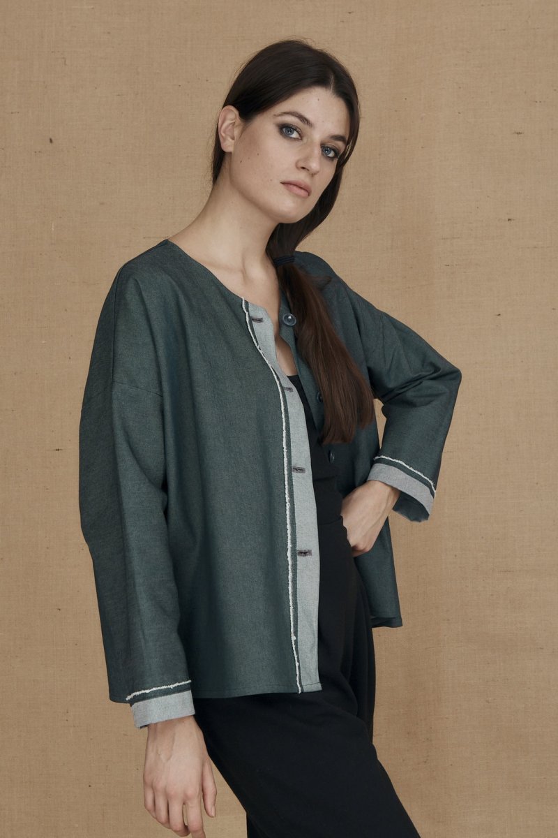 Veste verte courte pour femme en jean JAMES. Un tombé flatteur.